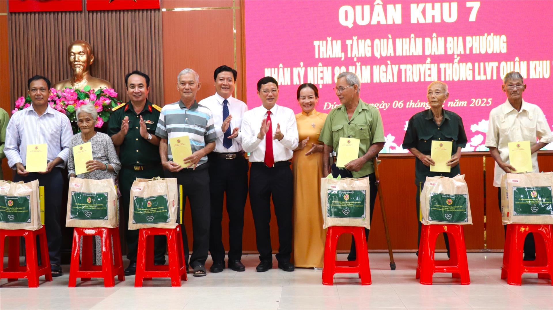 Cũng trong ngày 6/12, lãnh đạo Bộ Tư lệnh Quân khu 7 tổ chức các đoàn công tác thăm và tặng quà 8 chốt dân quân biên giới, 1 đồn Biên phòng; thăm và tặng quà cho giáo viên, học sinh trường mẫu giáo Tân Hiệp, xã biên giới Tân Hiệp của tỉnh Tây Ninh; thăm và tặng quà tri ân Đảng ủy, HĐND, UBND, Ủy ban MTTQ Việt Nam và các đối tượng chính sách trên địa bàn xã Đức Huệ và các xã biên giới Đông Thành, Mỹ Quý, Bình Thành của tỉnh Tây Ninh.