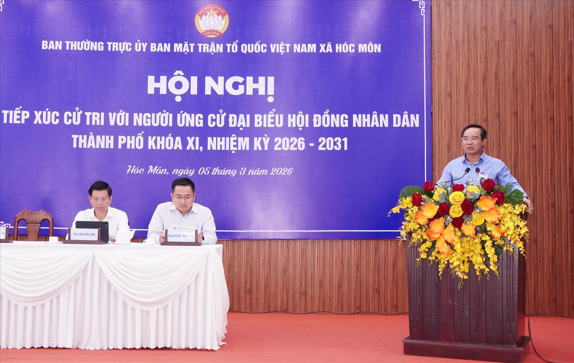 Điều này được Chủ tịch UBND Thành phố Hồ Chí Minh Nguyễn Văn Được và các ứng cử viên đại biểu HĐND Thành phố Hồ Chí Minh nhiệm kỳ 2026-2031 nêu rõ tại cuộc tiếp xúc với cử tri 3 xã Hóc Môn, Xuân Thới Sơn và Bà Điểm diễn ra sáng 5/3.