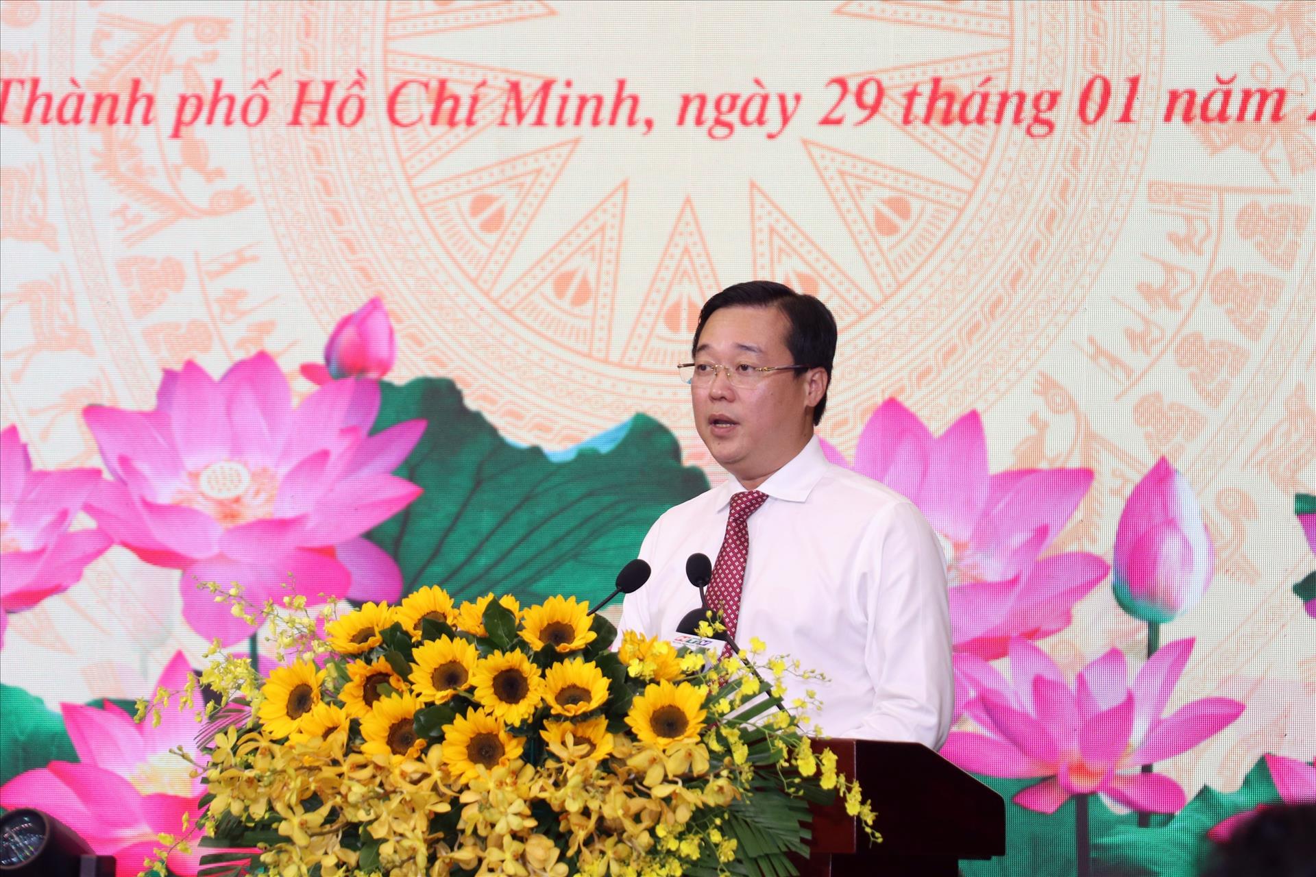 Phó Bí thư Thường trực Thành ủy Thành phố Hồ Chí Minh Lê Quốc Phong phát biểu tại Hội nghị. Ảnh: Tiến Lực - TTXVN