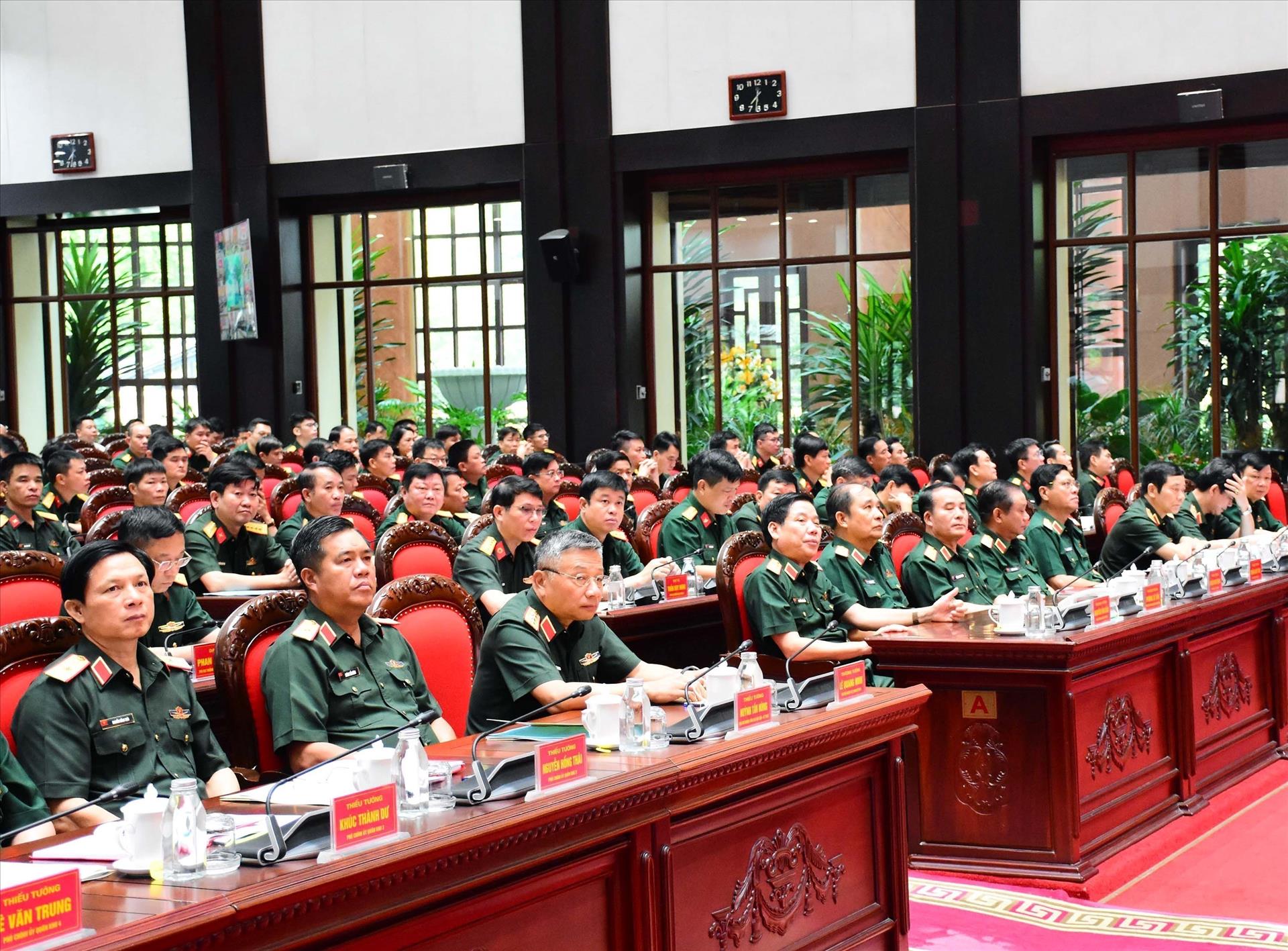 Đại diện lãnh đạo Bộ Quốc phòng, Tổng cục Chính trị QĐND Việt Nam, các cơ quan, đơn vị trực thuộc Bộ Quốc phòng dự hội nghị. Ảnh: Trọng Đức - TTXVN