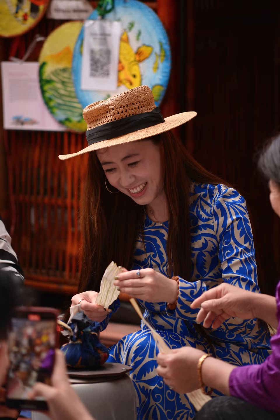 Thử làm nón lá, khách Tây thích thú “chạm” vào văn hóa truyền thống Việt Nam