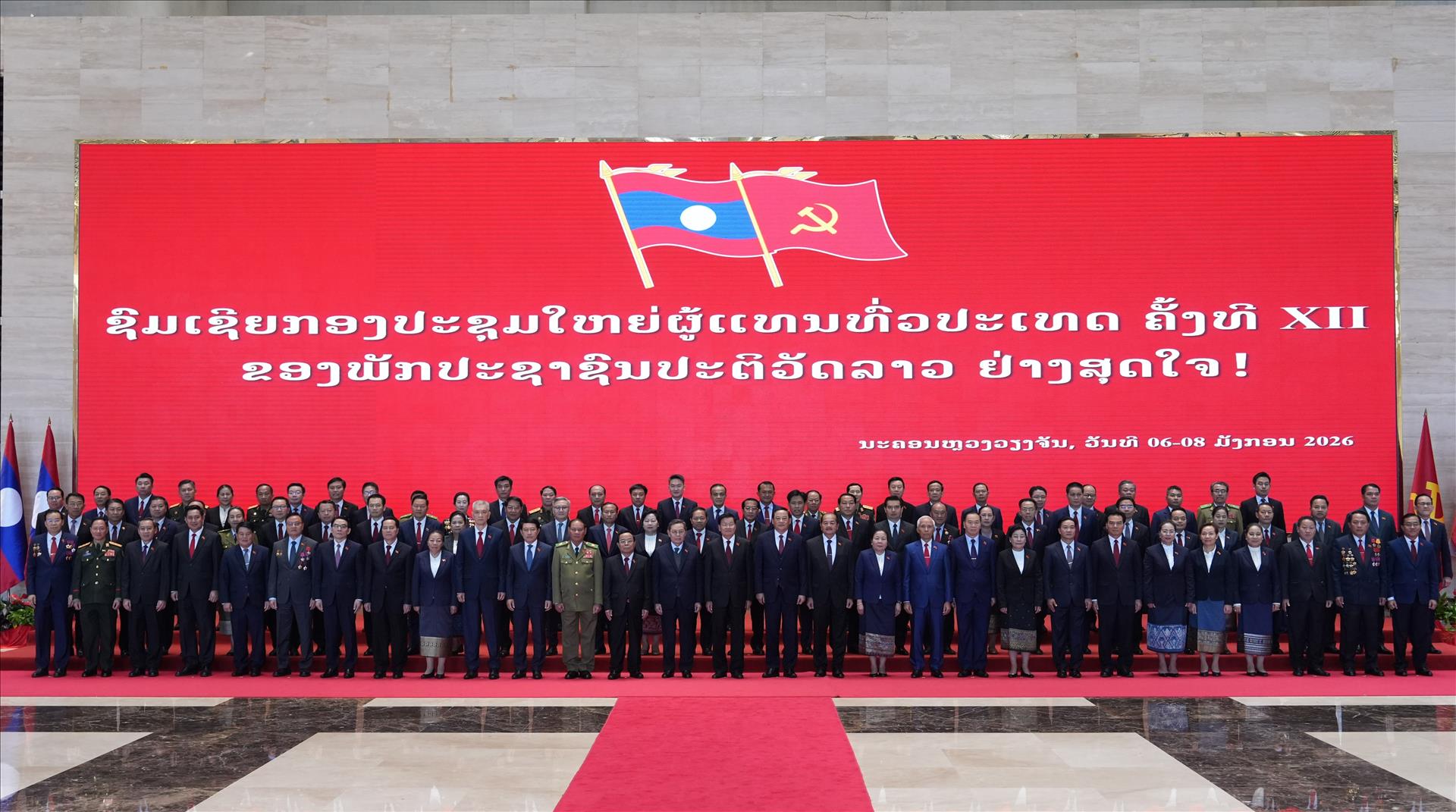 Các đại biểu tham dự Đại hội Đảng NDCM Lào khoá XII. Ảnh: TTXVN phát