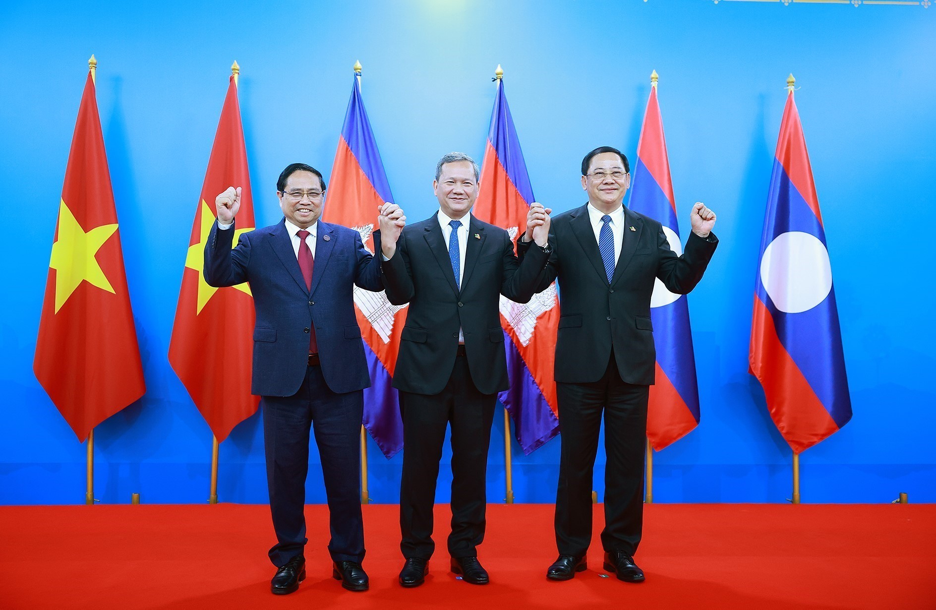 Các Thủ tướng Lào và Campuchia nhất trí với Thủ tướng Chính phủ Phạm Minh Chính, xác định 5 lĩnh vực đột phá trong thời gian tới, bao gồm giao thông vận tải, năng lượng, giáo dục-đào tạo, du lịch và kết nối thanh niên, nhất là tuyên truyền cho thế hệ trẻ về quan hệ truyền thống giữa ba nước.