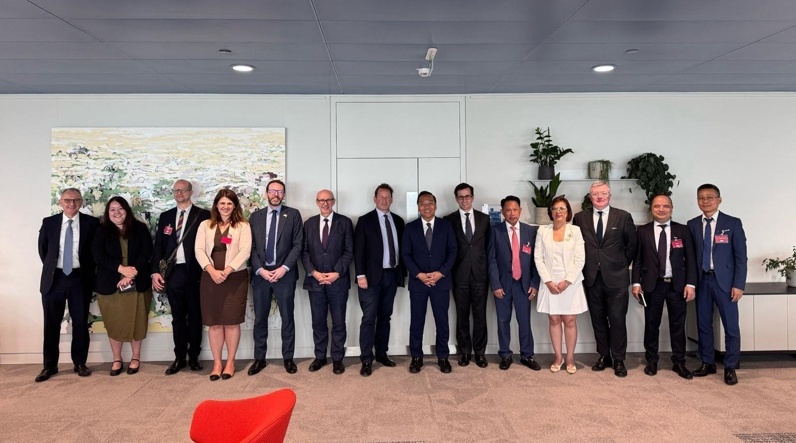 Lãnh đạo và đại diện các Bộ, ngành và Đại sứ quán hai nước Việt Nam-Vương quốc Anh chụp ảnh lưu niệm tại Khóa họp lần thứ 3 Ủy ban thương mại Hiệp định UKVFTA. Ảnh: TTXVN phát