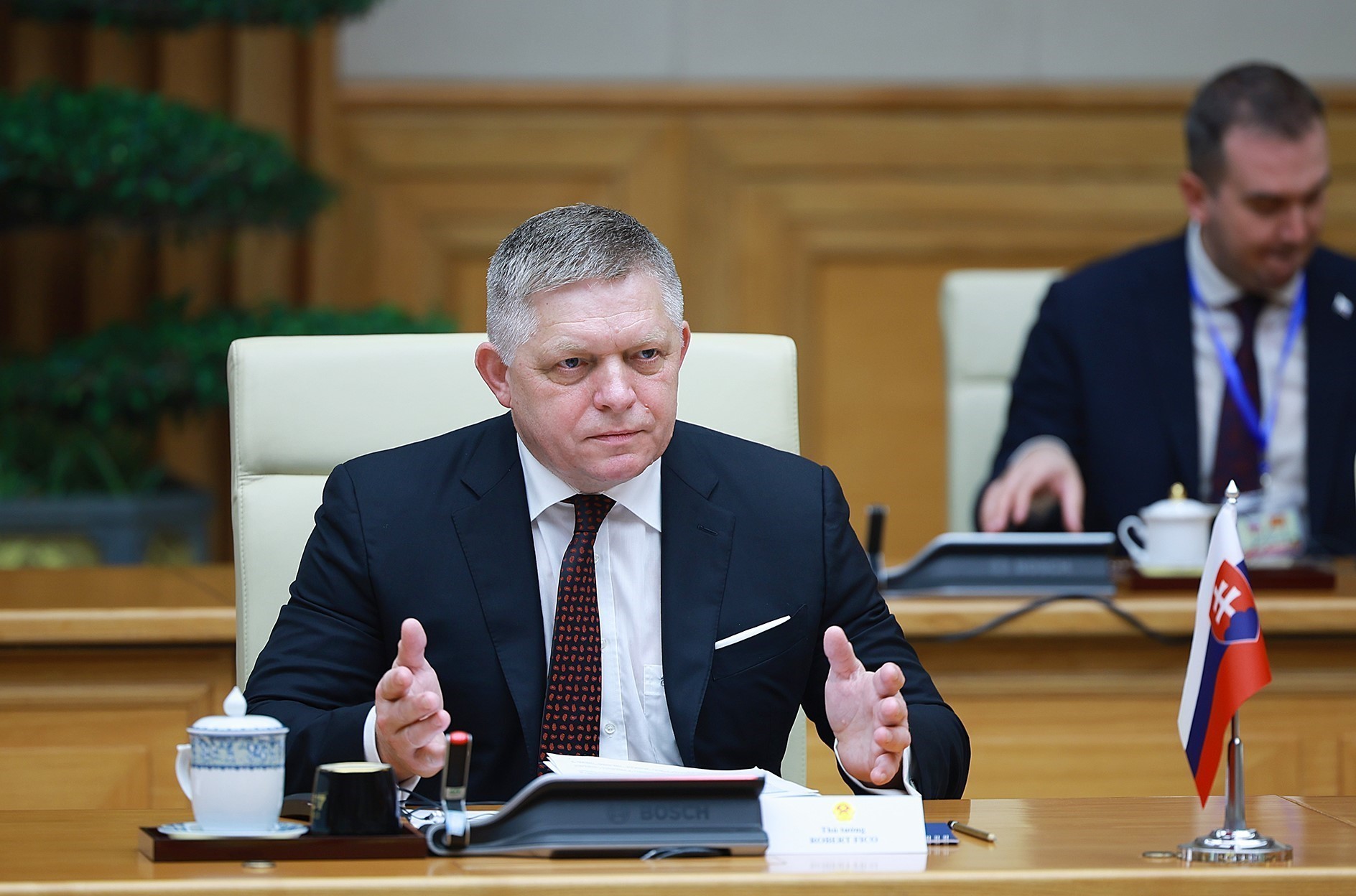Thủ tướng Cộng hòa Slovakia Robert Fico bày tỏ vui mừng thăm lại Việt Nam sau 10 năm; khẳng định Việt Nam là đối tác lớn nhất của Slovakia tại Đông Nam Á và là 1 trong 3 đối tác lớn nhất tại châu Á; chia sẻ đây là lần đầu tiên dẫn đầu phái đoàn có quy mô lớn nhất thăm chính thức nước ngoài, thể hiện sự coi trọng cao độ quan hệ hai nước và mong muốn nâng tầm quan hệ thực chất với Việt Nam.