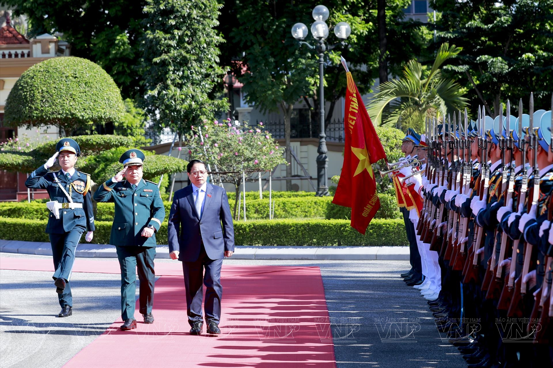 Lễ đón Thủ tướng Chính phủ Phạm Minh Chính đến dự Lễ kỷ niệm. Ảnh: Việt Cường/VNP