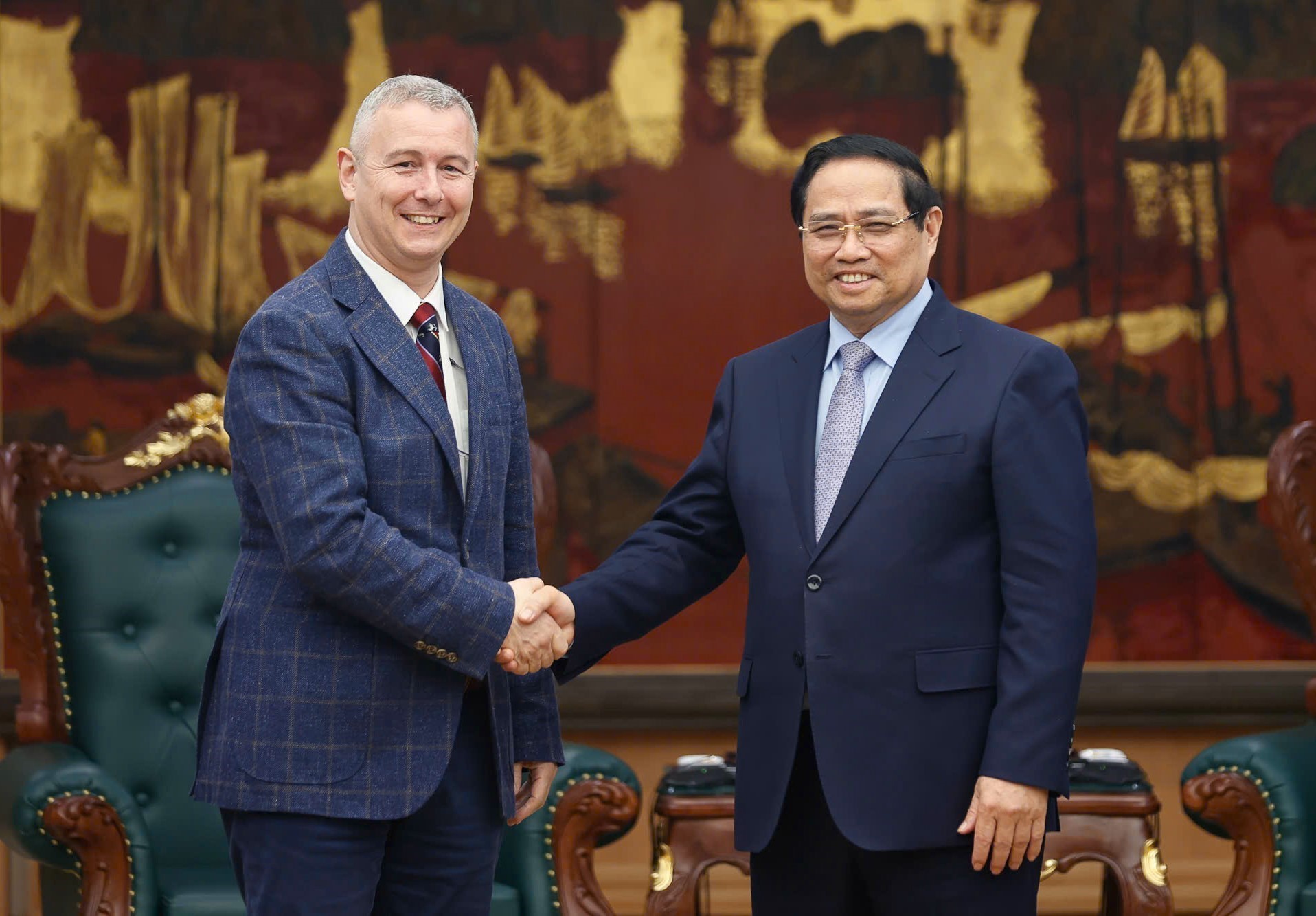 Thủ tướng Phạm Minh Chính tiếp Đại sứ Vương quốc Bỉ tại Việt Nam Karl Van den Bossche. Ảnh: Dương Giang-TTXVN