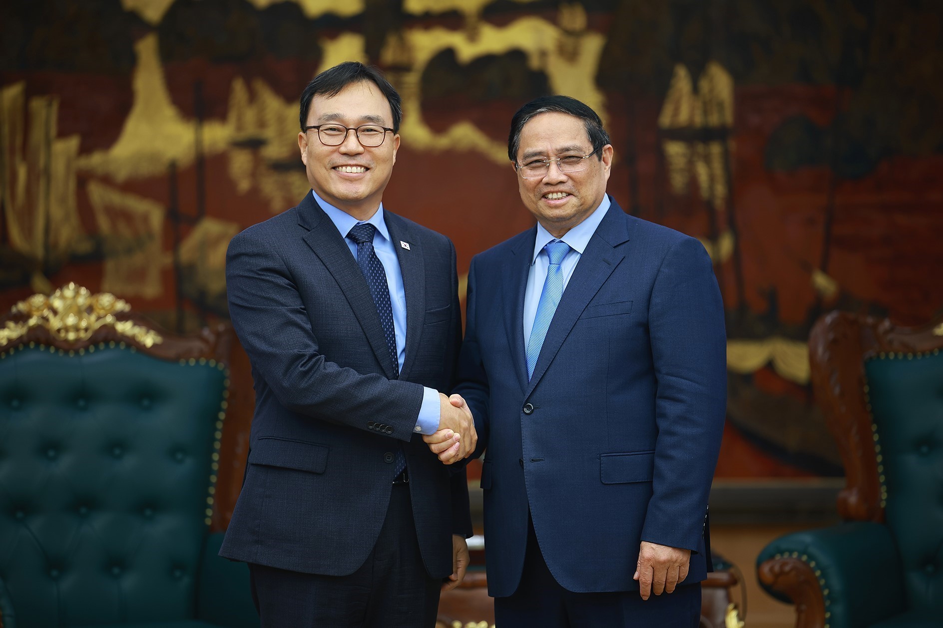Để tiếp tục thúc đẩy quan hệ Đối tác Chiến lược toàn diện, Thủ tướng đề nghị hai bên thúc đẩy kim ngạch thương mại sớm đạt mốc 100 tỷ USD và hướng tới 150 tỷ USD vào năm 2030 theo hướng cân bằng; khuyến khích doanh nghiệp Hàn Quốc mở rộng đầu tư vào các lĩnh vực bán dẫn, công nghệ lõi, năng lượng tái tạo...