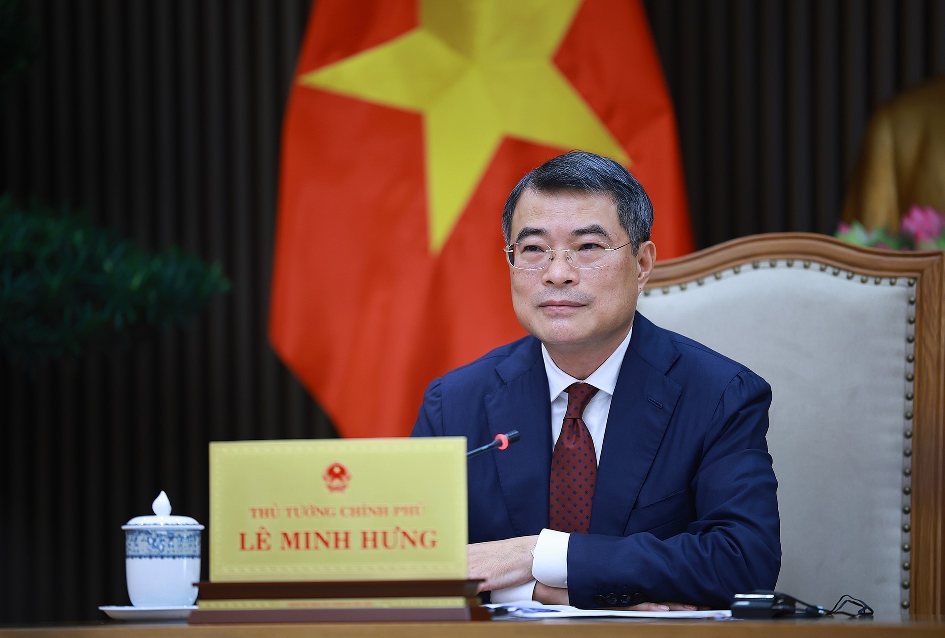 Thủ tướng Lê Minh Hưng điện đàm với Thủ tướng Singapore Lawrence Wong. Ảnh: Dương Giang-TTXVN
