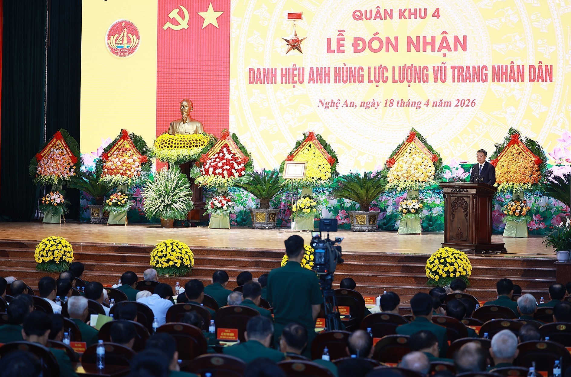 Thay mặt lãnh đạo Đảng, Nhà nước trao danh hiệu Anh hùng Lực lượng vũ trang nhân dân tặng Quân khu 4, phát biểu chúc mừng tại sự kiện, Thủ tương Chính phủ Lê Minh Hưng nhấn mạnh, trong đấu tranh giải phóng dân tộc, thống nhất đất nước, địa bàn Quân khu 4 có vị trí chiến lược quan trọng về quân sự, quốc phòng, an ninh.