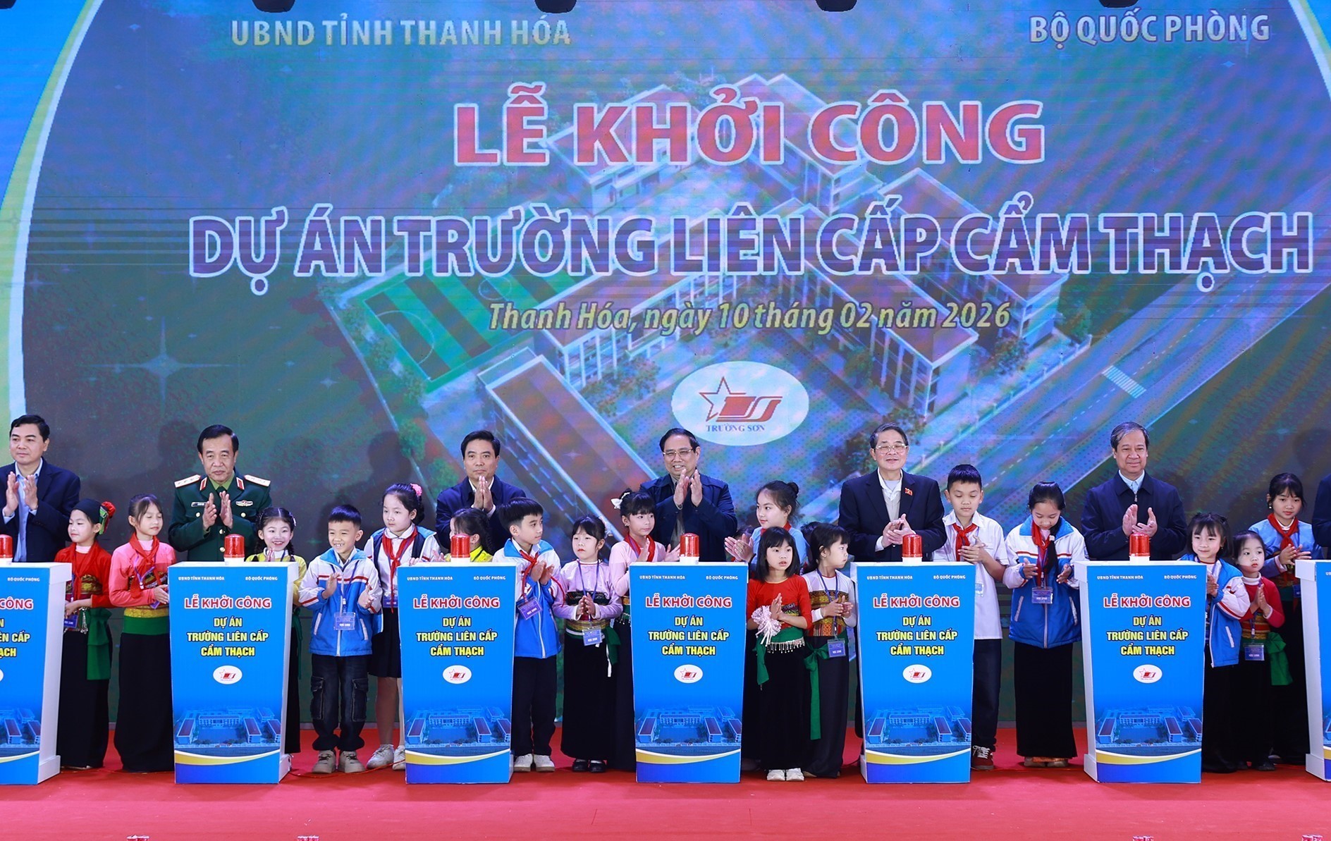 Biểu dương Bộ Quốc phòng đã quan tâm chỉ đạo, các đơn vị Binh đoàn 12, Tập đoàn Công nghiệp – Viễn thông Quân đội, Ngân hàng thương mại cổ phần Quân đội đã dành kinh phí tài trợ xây dựng Trường liên cấp Cẩm Thạch, Thủ tướng yêu cầu các đơn vị phối hợp với tỉnh Thanh Hóa và xã Cẩm Thạch nghiên cứu đầu tư xây dựng trường theo tiêu chuẩn của 248 trường liên cấp tại các xã biên giới, xong trước 31/8/2026 để đón học sinh vào học từ năm học 2026 – 2027. Trường phải được xây dựng đồng bộ, hiện đại, xanh, sạch với tầm nhìn 100 năm, xây dựng hệ sinh thái về giáo dục tại đây, với đầy đủ các hạng mục nhà hiệu bộ; khu bán trú; giảng đường với phòng học ngoại ngữ, tin học; khu vực phục vụ các hoạt động thể dục, thể thao, văn hóa; khu nhà ăn, khu vệ sinh với đầy đủ các trang thiết bị…