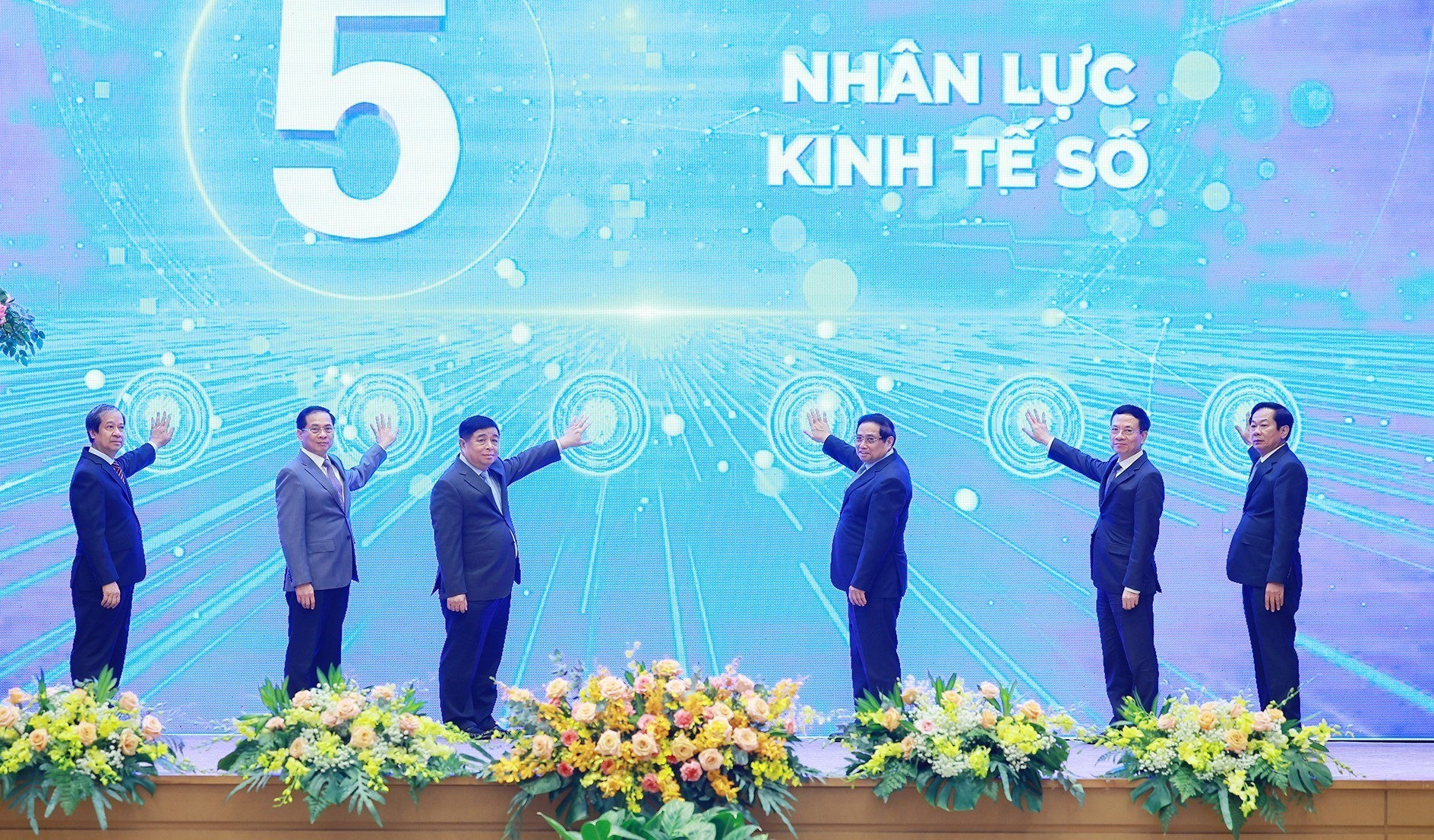 Thủ tướng Phạm Minh Chính yêu cầu thúc đẩy phát triển hạ tầng số, nhân lực số quốc gia, nhất là xây dựng và kết nối cơ sở dữ liệu; nhanh chóng triển khai có hiệu quả Chương trình học từ làm việc thực tế; xây dựng Báo cáo tổng thể về các ngành, nghề bị ảnh hưởng nhiều nhất bởi trí tuệ nhân tạo để xây dựng kế hoạch đào tạo lại, nâng cấp, chuyển đổi kỹ năng cho người lao động.