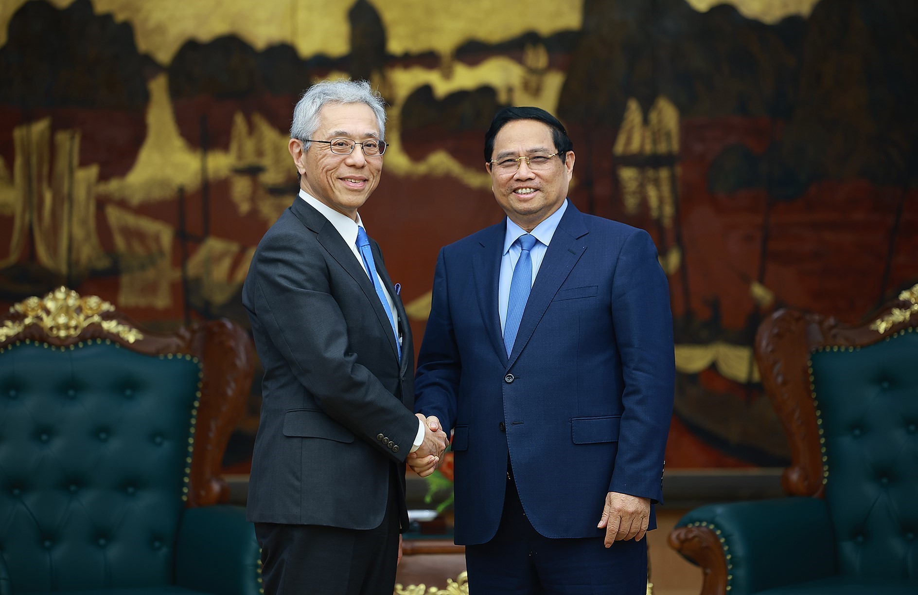 Thủ tướng Phạm Minh Chính tiếp ông Kenichi Hori, Chủ tịch kiêm Giám đốc điều hành Tập đoàn Mitsui. Ảnh: Dương Giang - TTXVN