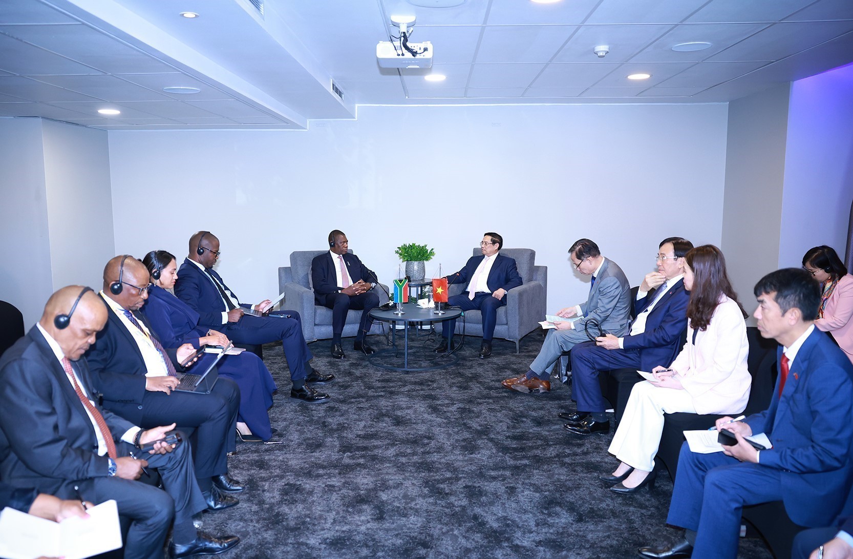 Tại cuộc gặp, Phó Tổng thống Nam Phi và Thủ tướng Phạm Minh Chính đã cùng trao đổi về hợp tác thương mại, đầu tư và vai trò của doanh nghiệp trong việc góp phần thúc đẩy quan hệ hai nước.
