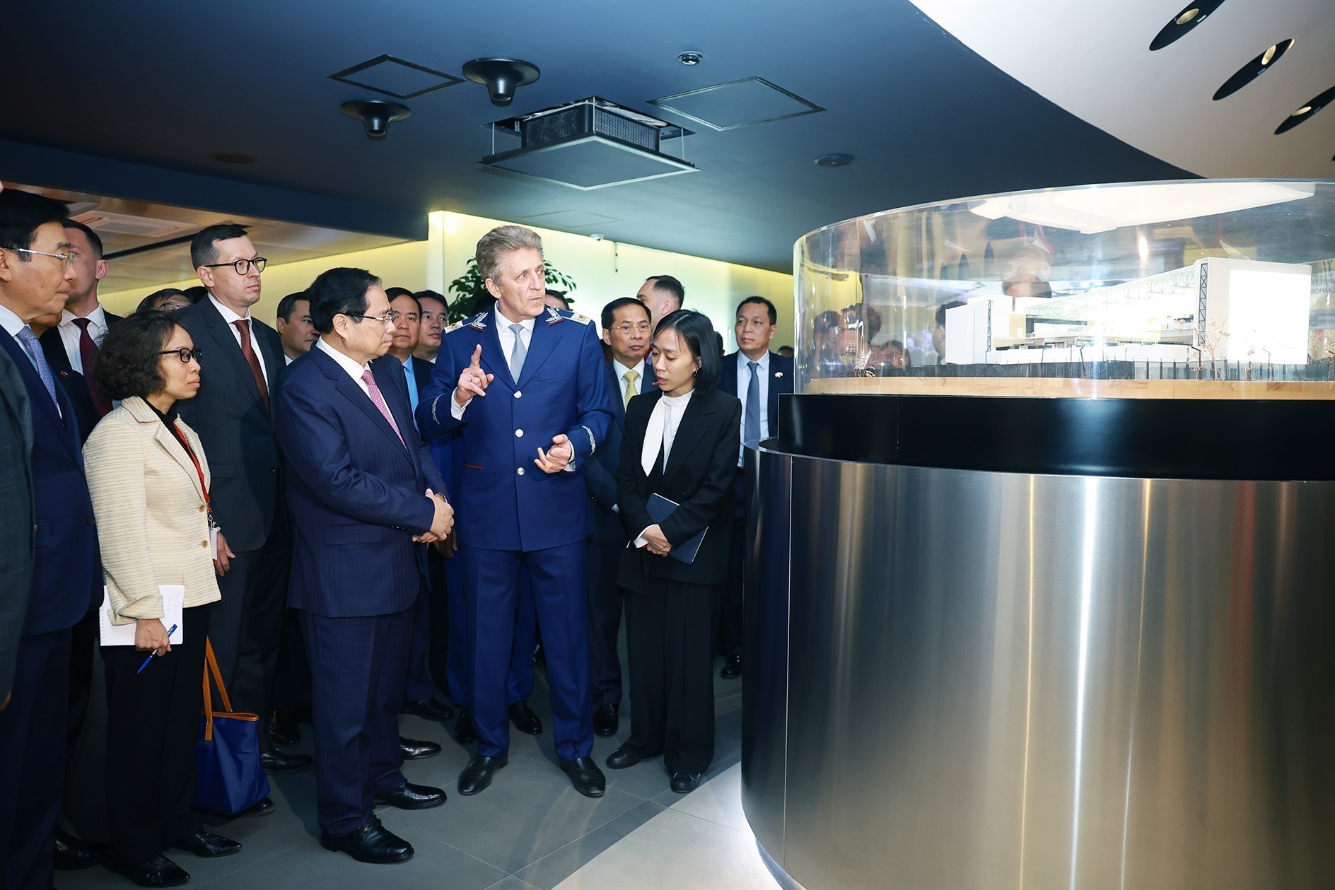 Tìm hiểu quá trình nghiên cứu, phát triển công nghệ nguyên tử, những yếu tố cốt lõi của khoa học và thực tiễn; nguồn lực con người, cơ sở vật chất của việc phát triển năng lượng nguyên tử cho mục đích hòa bình, Thủ tướng Chính phủ Phạm Minh Chính bày tỏ ngưỡng mộ về thành tựu phát triển năng lượng nguyên tử của Liên Xô trước đây và Liên bang Nga ngày nay.
