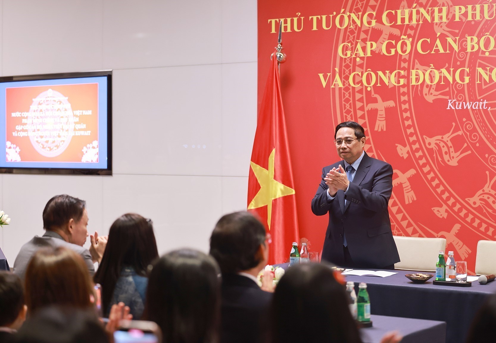 Đại diện cộng đồng người Việt Nam tại Kuwait bày tỏ vui mừng và rất đỗi tự hào được đón Thủ tướng Chính phủ và Phu nhân; cảm ơn Đảng, Nhà nước luôn quan tâm tới cộng đồng người Việt Nam ở nước ngoài; khẳng định mỗi cá nhân nỗ lực là một “sứ giả” hình ảnh Việt Nam, không chỉ lao động, cư trú, mà còn là cầu nối văn hoá - kinh tế giữa Việt Nam và nước sở tại.