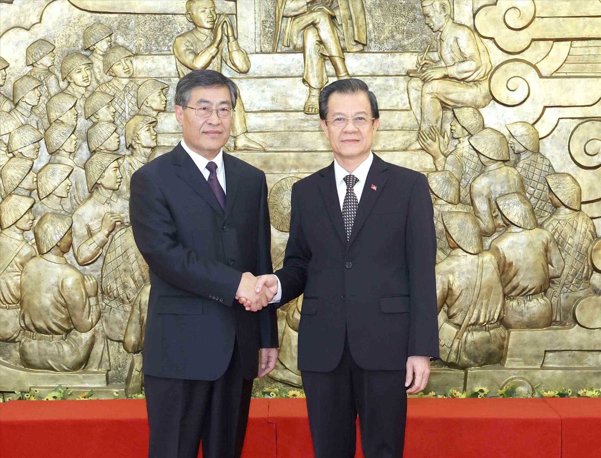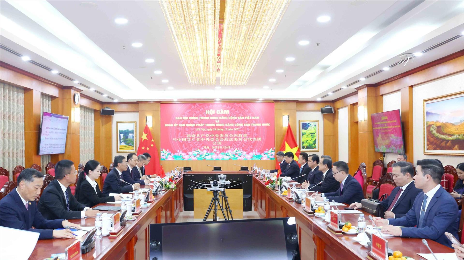 Đồng chí Lê Hồng Quang, Uỷ viên Trung ương Đảng, Phó Trưởng Ban Nội chính Trung ương và đồng chí Vương Di Tinh, Phó Tổng thư ký Uỷ ban Chính pháp Trung ương Đảng Cộng sản Trung Quốc. Ảnh: Phương Hoa - TTXVN