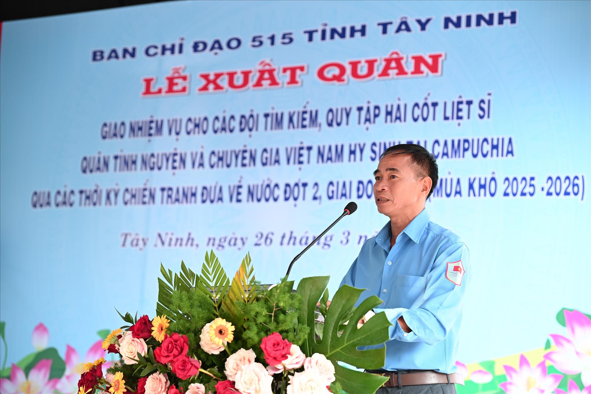 Ngày 26/3, tại khu vực Cửa khẩu Quốc tế Bình Hiệp (xã Bình Hiệp, tỉnh Tây Ninh), Ban Chỉ đạo 515 tỉnh Tây Ninh tổ chức lễ xuất quân, giao nhiệm vụ cho cán bộ, chiến sĩ các Đội K70 (Cục Chính trị Quân khu 7), K71 và K73 (Bộ Chỉ huy Quân sự tỉnh Tây Ninh) thực hiện nhiệm vụ tìm kiếm, quy tập hài cốt liệt sĩ quân tình nguyện và chuyên gia Việt Nam hy sinh qua các thời kỳ tại Campuchia đưa về nước đợt 2, giai đoạn XXV (mùa khô 2025–2026).