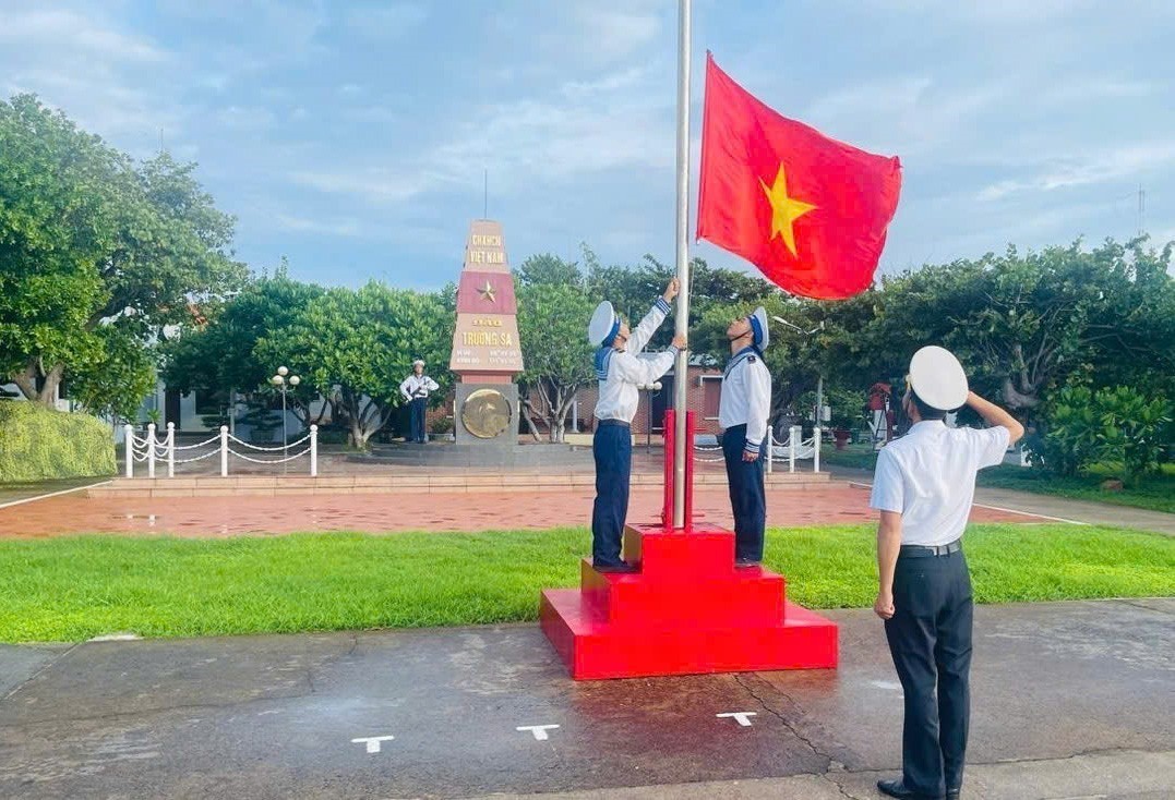 Lễ chào cờ đầu tuần trên đảo Trường Sa. Ảnh: TTXVN phát
