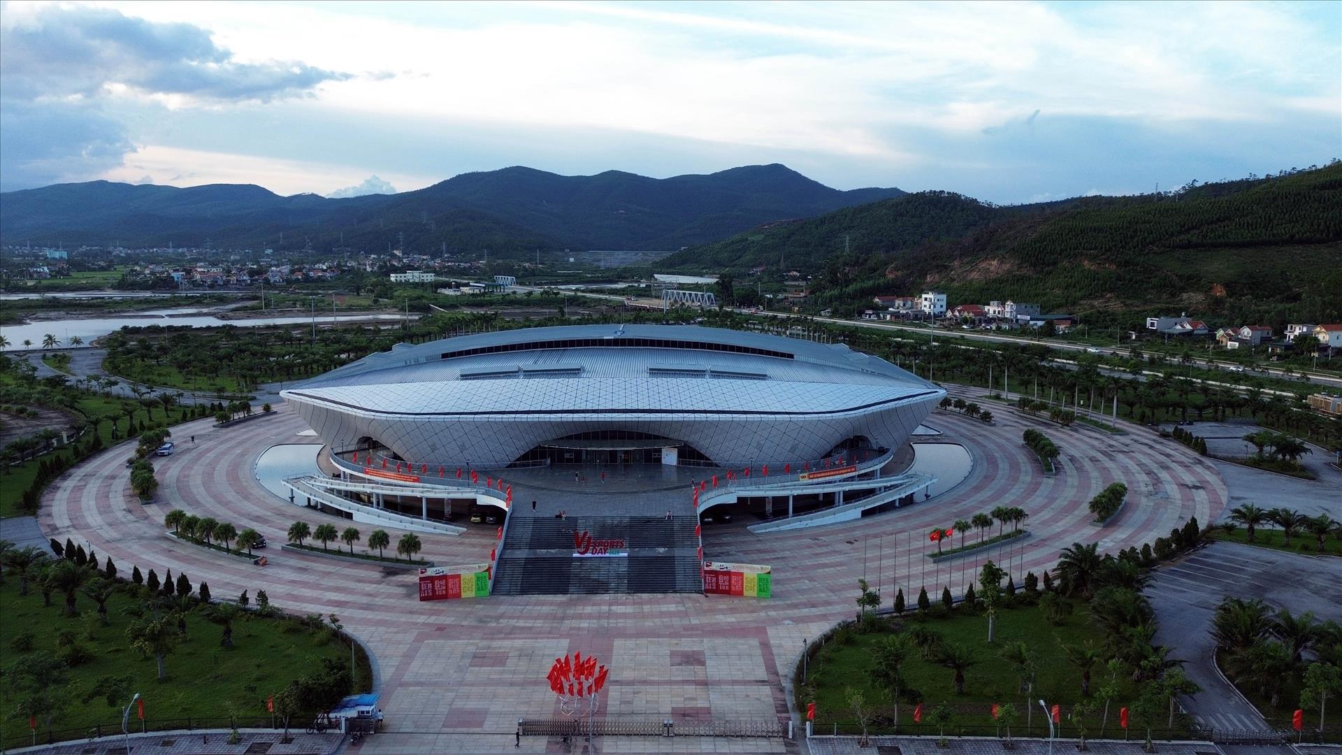 Nhà thi đấu đa năng 5.000 chỗ tại phường Tuần Châu (tỉnh Quảng Ninh) là công trình mang tính biểu tượng của tỉnh với thiết kế độc đáo, lấy cảm hứng từ hình dáng một hòn đảo (hình con rùa) nằm trong Vịnh Hạ Long, tổng mức đầu tư hơn 1.149 tỷ đồng. Ảnh: Đức Hiếu - TTXVN