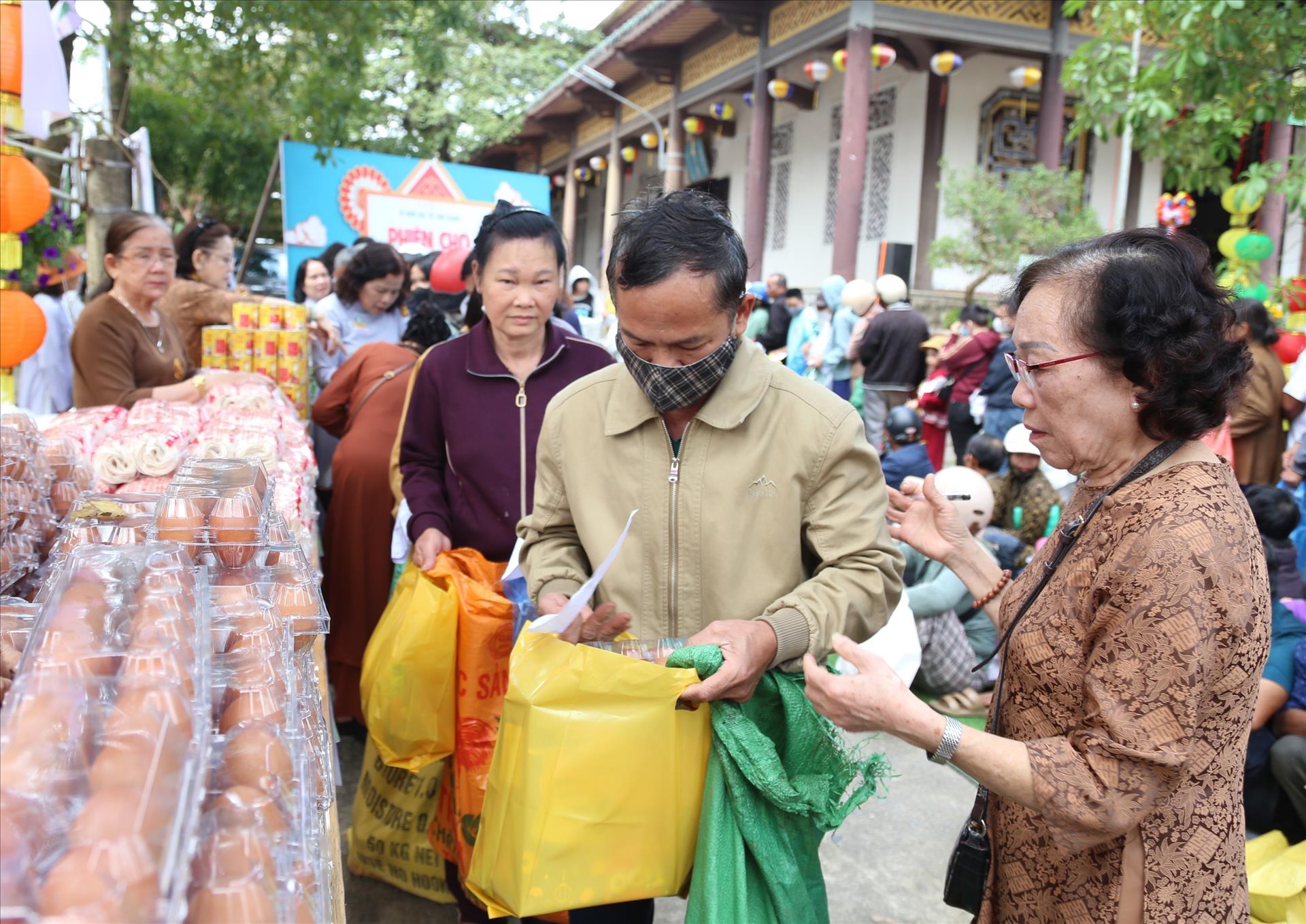 Người dân có hoàn cảnh khó khăn tham gia phiên chợ được nhận nhiều nhu yếu phẩm thiết yếu cho dịp Tết. Ảnh: Thanh Thuỷ-TTXVN