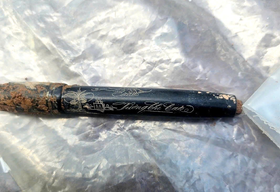 Đặc biệt, có 1 hài cốt liệt sĩ được tìm thấy kèm di vật là bút máy khắc một vài hoạ tiết và có dòng chữ “Vương Chí Cao”. Ảnh: TTXVN phát