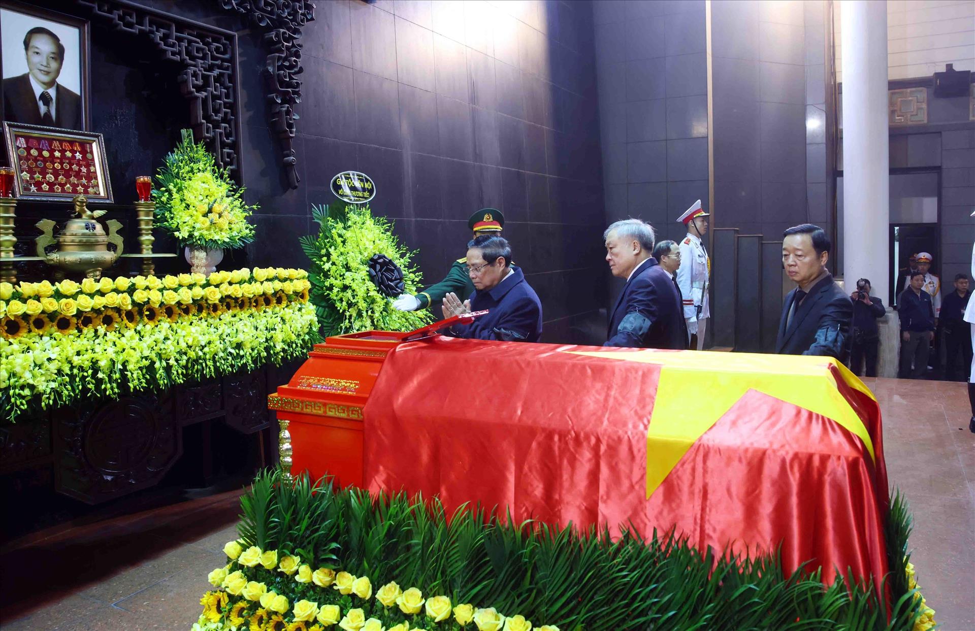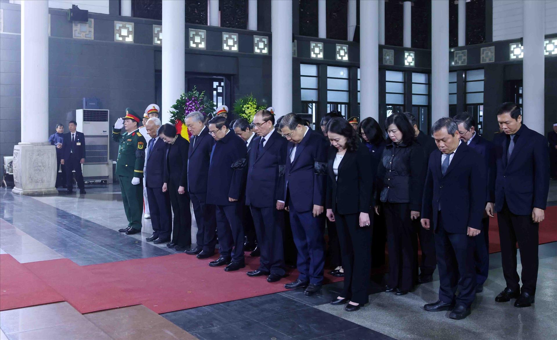 Tổng Bí thư Tô Lâm; nguyên Chủ tịch nước Trương Tấn Sang; nguyên Thủ tướng Chính phủ Nguyễn Tấn Dũng; Ủy viên Bộ Chính trị, Chủ tịch Quốc hội Trần Thanh Mẫn; các nguyên Ủy viên Bộ Chính trị, nguyên Chủ tịch Quốc hội: Nguyễn Văn An, Nguyễn Sinh Hùng, Nguyễn Thị Kim Ngân; Ủy viên Bộ Chính trị, Thường trực Ban Bí thư Trần Cẩm Tú; nguyên Ủy viên Thường vụ, Thường trực Bộ Chính trị, nguyên Chủ tịch Ủy ban Trung ương Mặt trận Tổ quốc Việt Nam Phạm Thế Duyệt, các nguyên Ủy viên Bộ Chính trị, nguyên Thường trực Ban Bí thư: Phan Diễn, Lê Hồng Anh, Trần Quốc Vượng; Ủy viên Bộ Chính trị, Bí thư Trung ương Đảng, Chủ tịch Ủy ban Trung ương Mặt trận Tổ quốc Việt Nam Bùi Thị Minh Hoài gửi vòng hoa kính viếng.