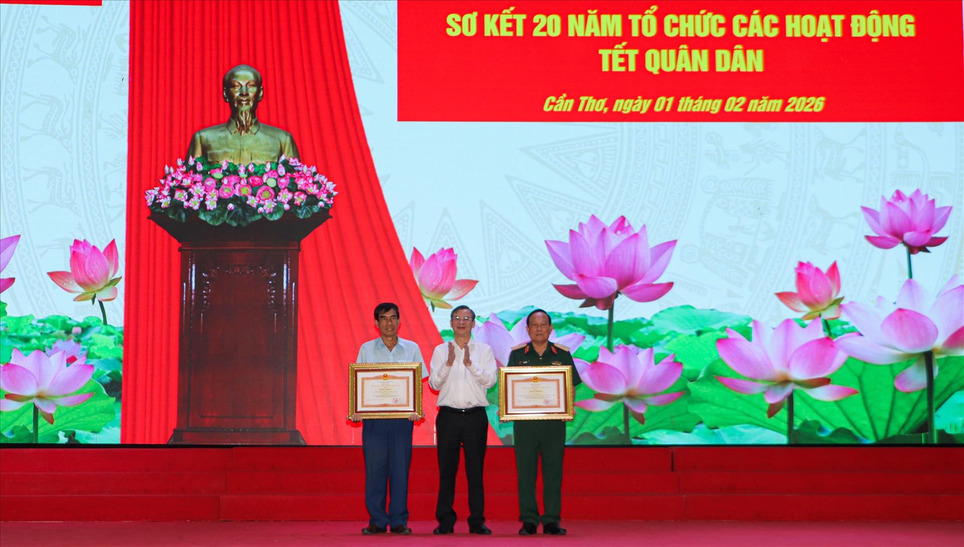 Dịp này, Thủ tướng Chính phủ tặng bằng khen cho 1 tập thể, 1 cá nhân có thành tích trong hoạt động tổ chức Tết Quân dân và thực hiện công tác an sinh xã hội trên địa bàn thành phố Cần Thơ; Chính ủy Quân khu 9 tặng bằng khen cho 7 tập thể, 15 cá nhân; Chủ tịch UBND thành phố tặng bằng khen cho 15 tập thể, 31 cá nhân có thành tích tiêu biểu trong công tác lãnh đạo, chỉ đạo và tổ chức các hoạt động Tết Quân dân giai đoạn 2007 – 2026 trên địa bàn thành phố.