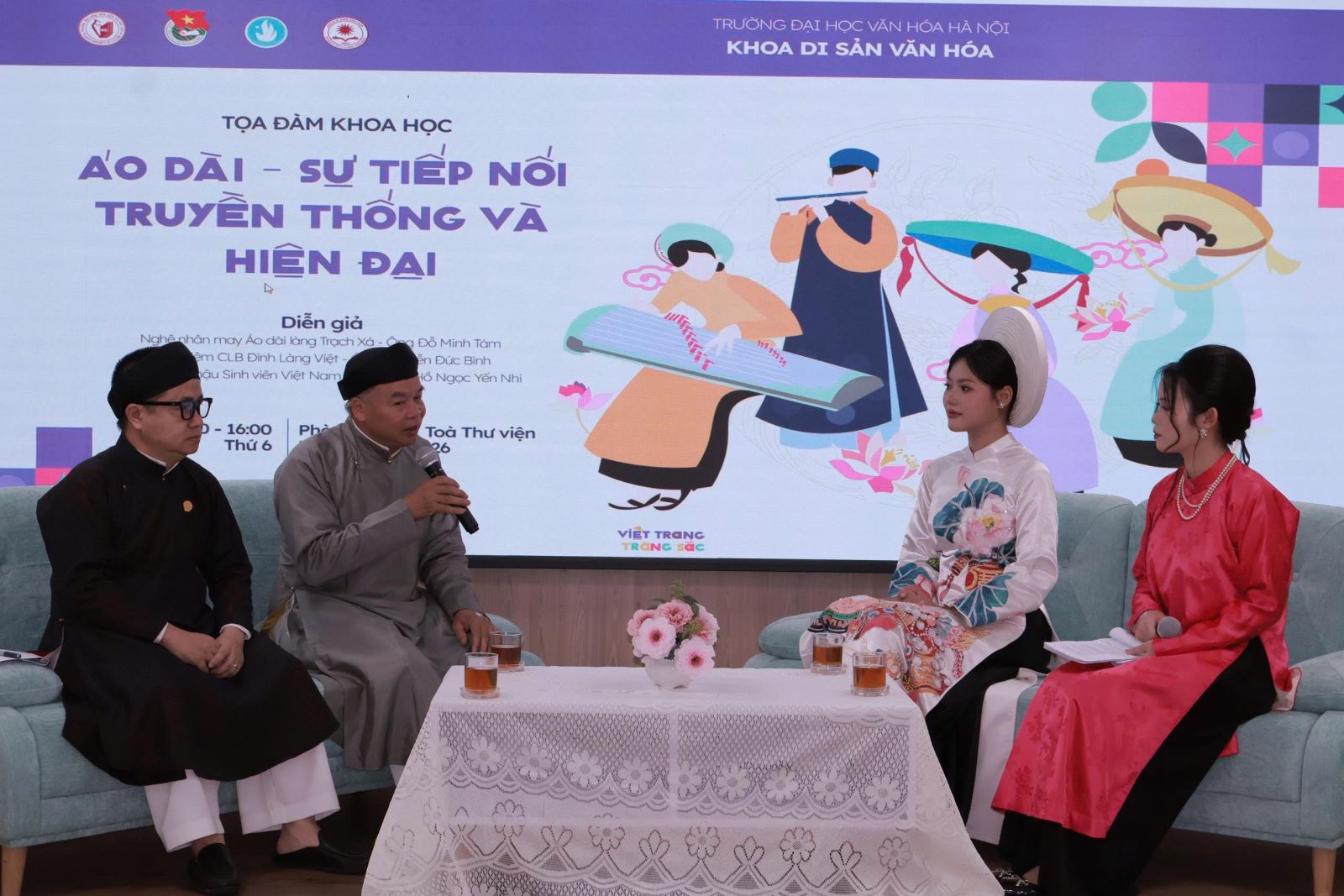 Ngày 17/4, đã diễn ra tọa đàm chuyên đề về áo dài trong khuôn khổ sự kiện “Việt Trang Tràng Sắc” do sinh viên Khoa Di sản Văn hóa, Trường Đại học Văn hóa Hà Nội tổ chức.