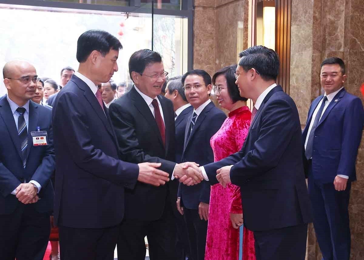 Tổng Bí thư, Chủ tịch nước Lào Thongluon Sinsoulith với các đại biểu. Ảnh: Văn Điệp – TTXVN
