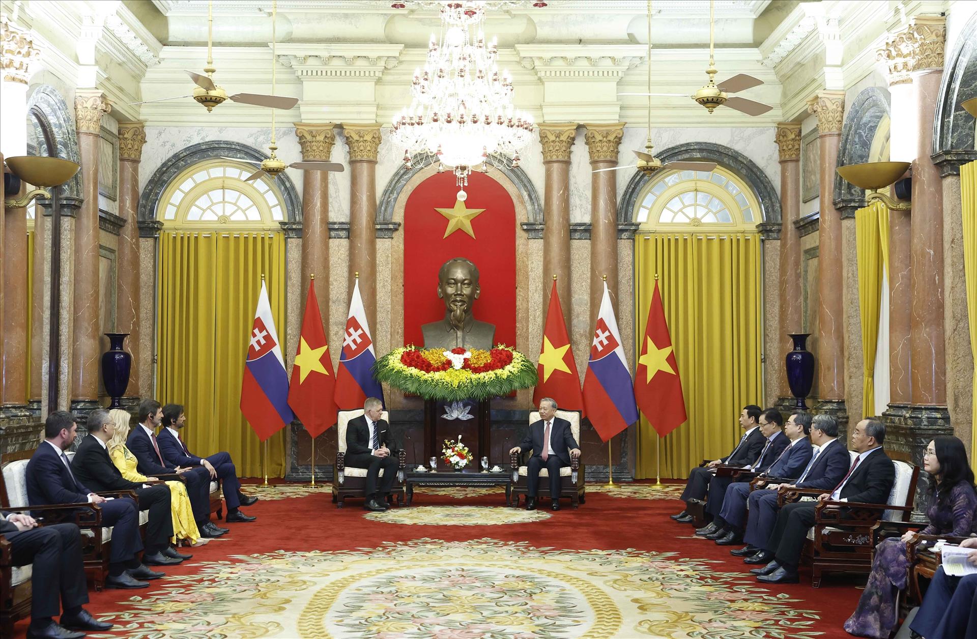 Tổng Bí thư, Chủ tịch nước Tô Lâm tin tưởng, với tầm vóc Đối tác Chiến lược, quan hệ Việt Nam - Slovakia sẽ không ngừng phát triển mạnh mẽ, mang lại lợi ích thiết thực cho nhân dân hai nước, đóng góp cho hòa bình và phát triển tại mỗi khu vực.