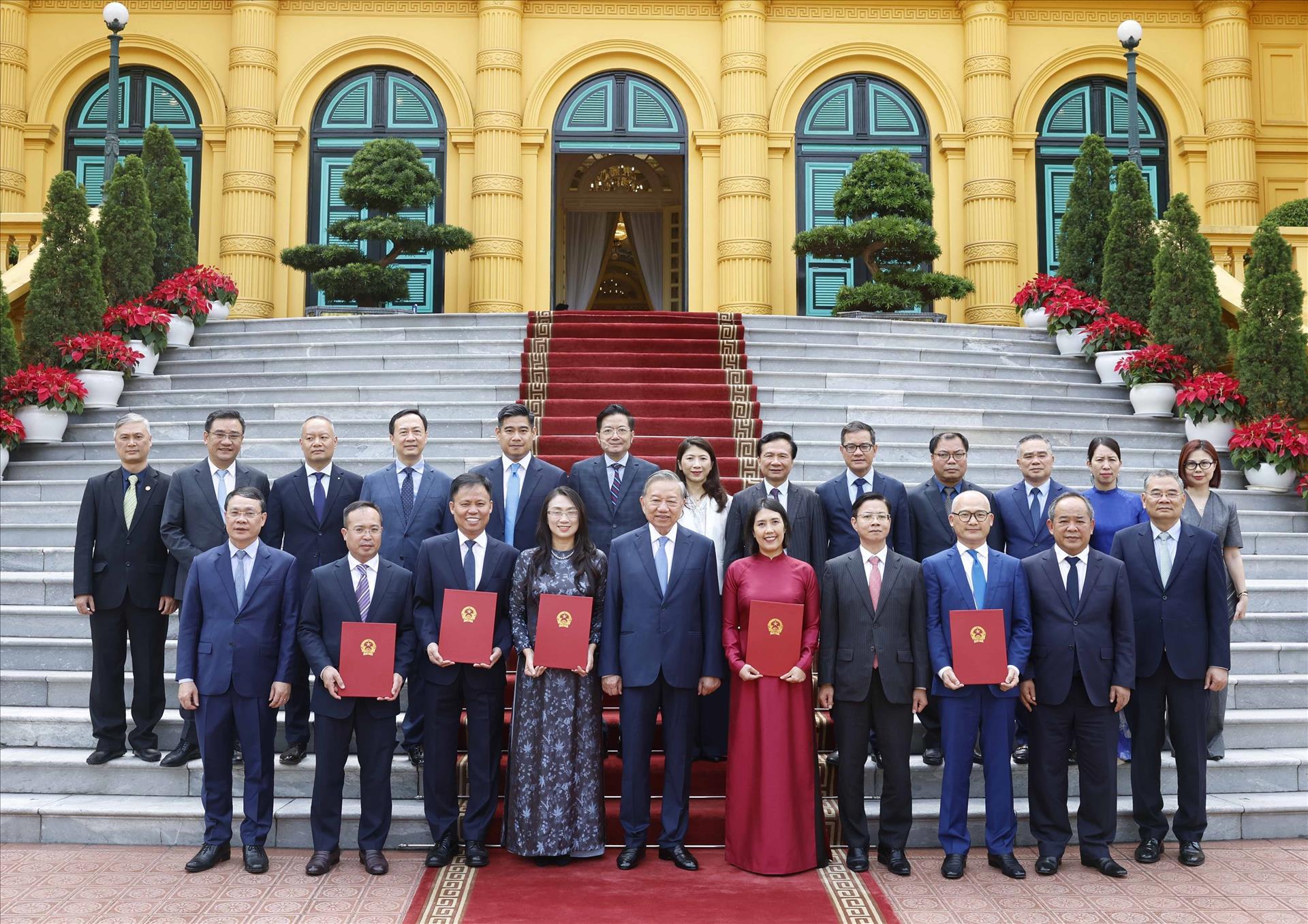 Theo quyết định của Chủ tịch nước, ông Trịnh Minh Mạnh, Trưởng ban, Ban Đào tạo đại học và sau đại học, Học viện Ngoại giao, Bộ Ngoại giao được bổ nhiệm làm Đại sứ đặc mệnh toàn quyền nước Cộng hòa xã hội chủ nghĩa Việt Nam tại Ấn Độ, kiêm nhiệm Cộng hòa Dân chủ Liên bang Nepal và Vương quốc Bhutan; bà Nguyễn Hương Trà, Quyền Viện trưởng, Viện Nghiên cứu chiến lược ngoại giao, Học viện Ngoại giao, Bộ Ngoại giao được bổ nhiệm làm Đại sứ đặc mệnh toàn quyền nước Cộng hòa xã hội chủ nghĩa Việt Nam tại Vương quốc Bỉ, kiêm nhiệm Đại Công quốc Luxembourg và Đại diện thường trực Việt Nam bên cạnh Liên minh châu Âu; ông Doãn Khánh Tâm, Phó Giám đốc Trung tâm thông tin tư liệu, Học viện Ngoại giao, Bộ Ngoại giao được bổ nhiệm làm Đại sứ đặc mệnh toàn quyền nước Cộng hòa xã hội chủ nghĩa Việt Nam tại Cộng hòa Dân chủ Nhân dân Triều Tiên; bà Châu Mai Anh, Phó Cục trưởng, Cục Lễ tân Nhà nước và Phiên dịch đối ngoại, Bộ Ngoại giao được bổ nhiệm làm Đại sứ đặc mệnh toàn quyền nước Cộng hòa xã hội chủ nghĩa Việt Nam tại Liên bang Thụy Sỹ, kiêm nhiệm Công quốc Liechtenstein; ông Nguyễn Thành Lê, Phó Viện trưởng, Viện Biển Đông, Học viện Ngoại giao, Bộ Ngoại giao được bổ nhiệm làm Đại sứ đặc mệnh toàn quyền nước Cộng hòa xã hội chủ nghĩa Việt Nam tại Cộng hòa Kazakhstan, kiêm nhiệm Cộng hòa Kyrgyzstan, Cộng hòa Tajikistan và Georgia.
