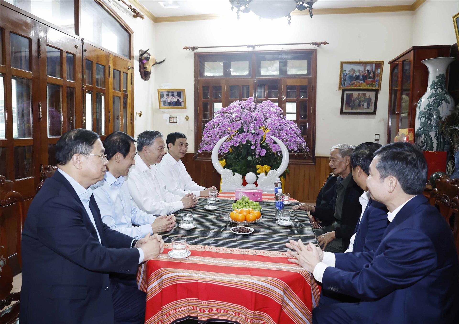 *Chiều cùng ngày, Tổng Bí thư Tô Lâm và Đoàn công tác của Trung ương đã đến thăm, chúc Tết nguyên Bí thư Tỉnh ủy Đắk Lắk Y Luyện. Ghi nhận những đóng góp, cống hiến của cá nhân đồng chí và các thế hệ cán bộ người dân tộc thiểu số nói chung đối với sự nghiệp xây dựng, phát triển địa phương, Tổng Bí thư mong muốn đồng chí nguyên lãnh đạo tỉnh Đắk Lắk luôn là chỗ dựa tinh thần vững chắc, tấm gương sáng cho con cháu và thế hệ trẻ noi theo, tiếp tục đóng góp trí tuệ, kinh nghiệm quý báu cho công tác dân tộc, xây dựng khối đại đoàn kết vững mạnh và phát triển kinh tế, xã hội, bảo đảm quốc phòng, an ninh của địa phương./.