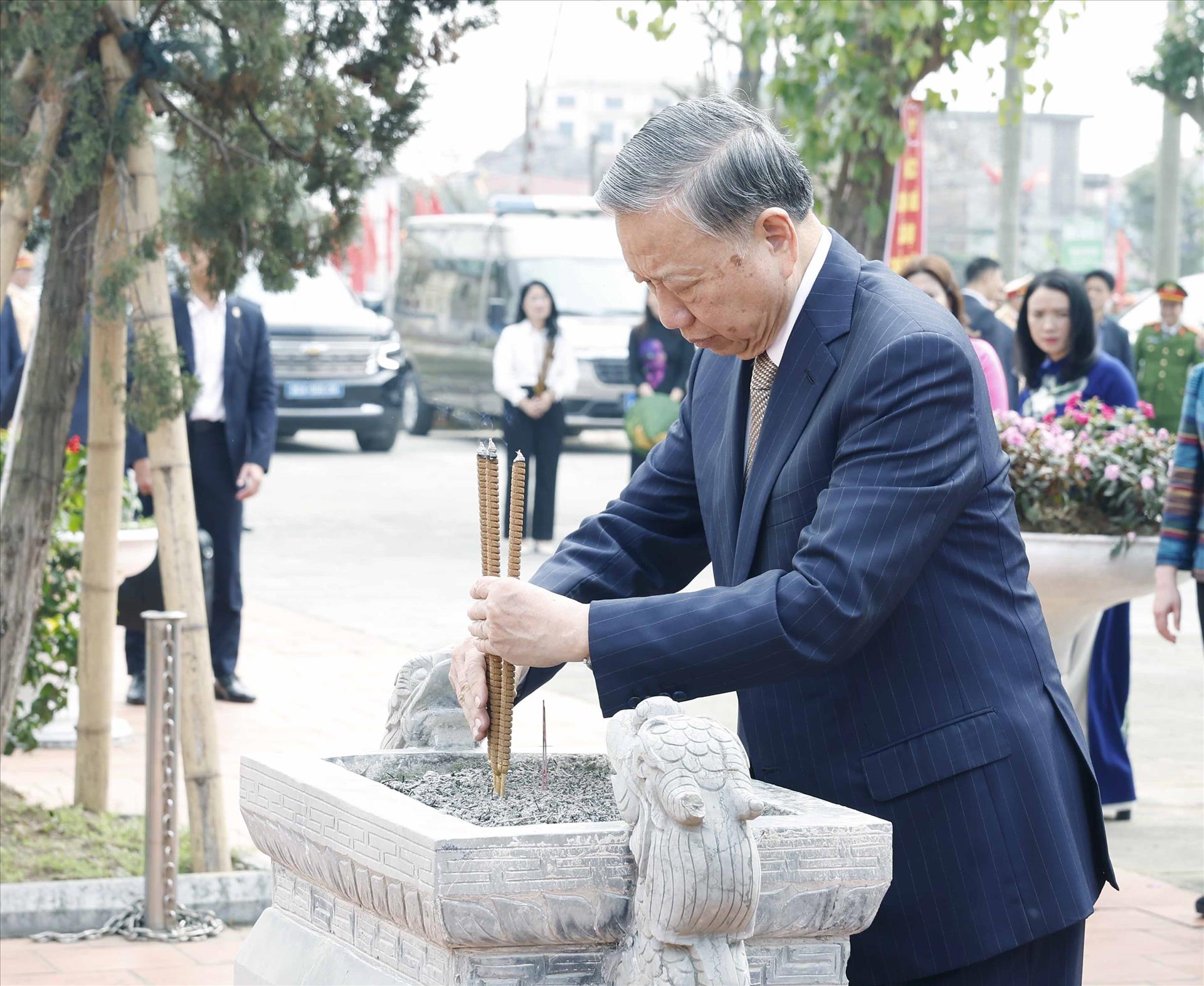 Tổng Bí thư Tô Lâm dâng hương tưởng niệm Tổng Bí thư Lê Hồng Phong. Ảnh: Thống Nhất - TTXVN