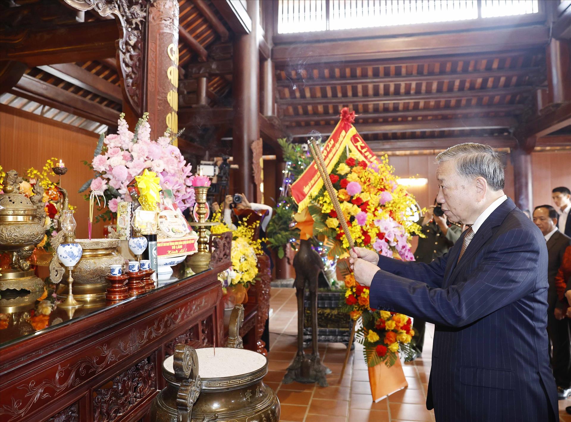 Tổng Bí thư Tô Lâm dâng hương tưởng nhớ các Anh hùng liệt sĩ Xô viết Nghệ Tĩnh. Ảnh: Thống Nhất - TTXVN