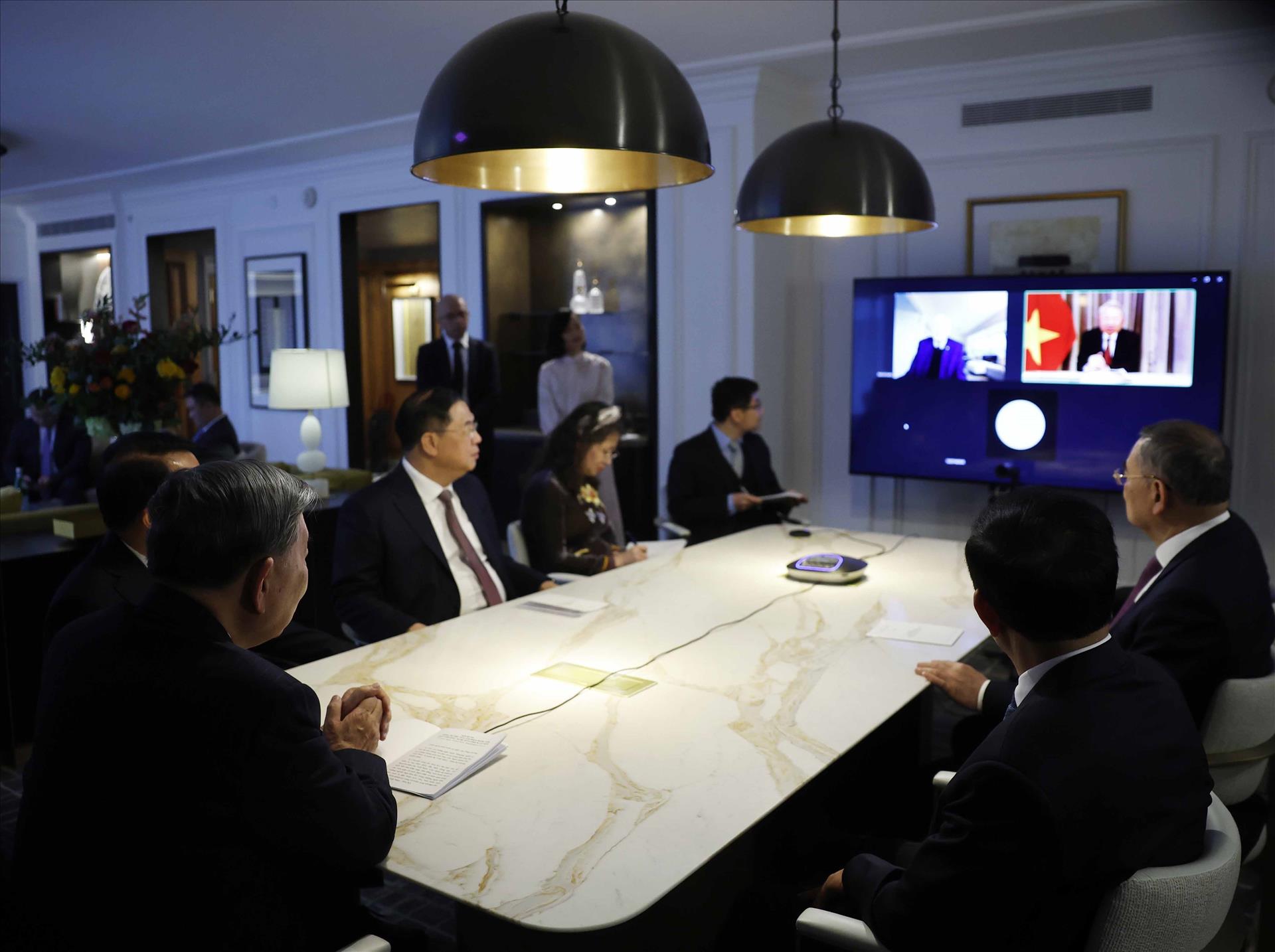 Tổng Bí thư chia sẻ dịp dự cuộc họp khai mạc Hội đồng Hòa bình lần này cũng là cơ hội gặp gỡ những người bạn Hoa Kỳ, qua đó đánh dấu một khởi đầu tích cực cho năm 2026, góp phần tạo xung lực mới cho quan hệ Đối tác chiến lược toàn diện Việt Nam – Hoa Kỳ. Tổng Bí thư thông tin về những định hướng lớn của Việt Nam trong thời gian tới được đề ra sau Đại hội Đảng toàn quốc lần thứ XIV, với mục tiêu phát triển đất nước lên tầm cao mới, tiếp tục hội nhập quốc tế sâu rộng.
