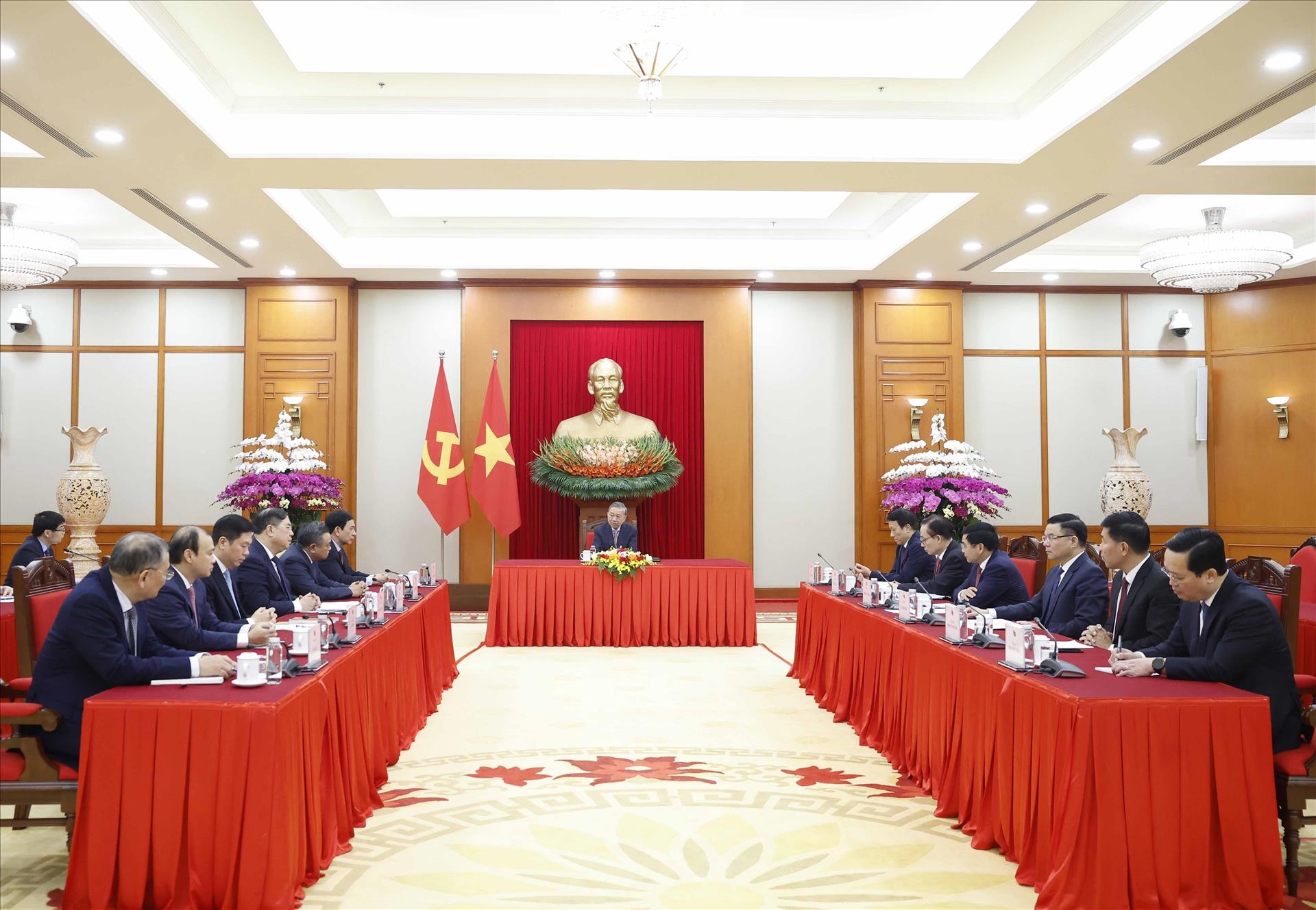 Chiều 30/1, tại Trụ sở Trung ương Đảng, Tổng Bí thư Đảng Cộng sản Việt Nam Tô Lâm đã điện đàm với Tổng Thư ký Đảng Hành động Nhân dân (PAP), Thủ tướng Singapore Lawrence Wong.