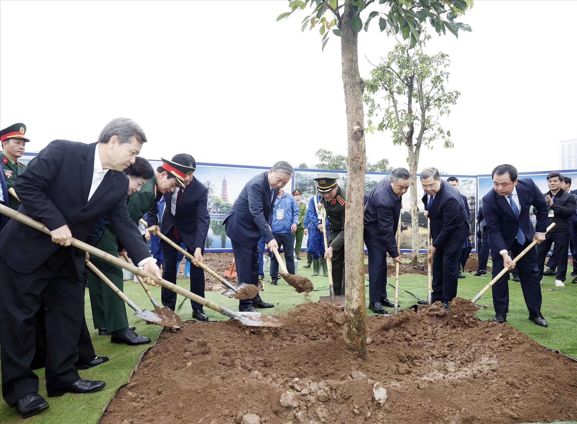 Để lan tỏa tinh thần trách nhiệm và khát vọng cống hiến, Tổng Bí thư mong muốn mỗi cán bộ, đảng viên, mỗi người dân Thủ đô, đặc biệt là thế hệ trẻ hãy coi việc trồng và chăm sóc cây xanh là hành động thiết thực học tập và làm theo Bác; là thể hiện trách nhiệm với cộng đồng và thế hệ mai sau; khẳng định trồng cây hôm nay là gieo mầm hạnh phúc cho tương lai, góp phần hiện thực hóa cam kết của Việt Nam với cộng đồng quốc tế về giảm phát thải ròng và ứng phó với biến đổi khí hậu.