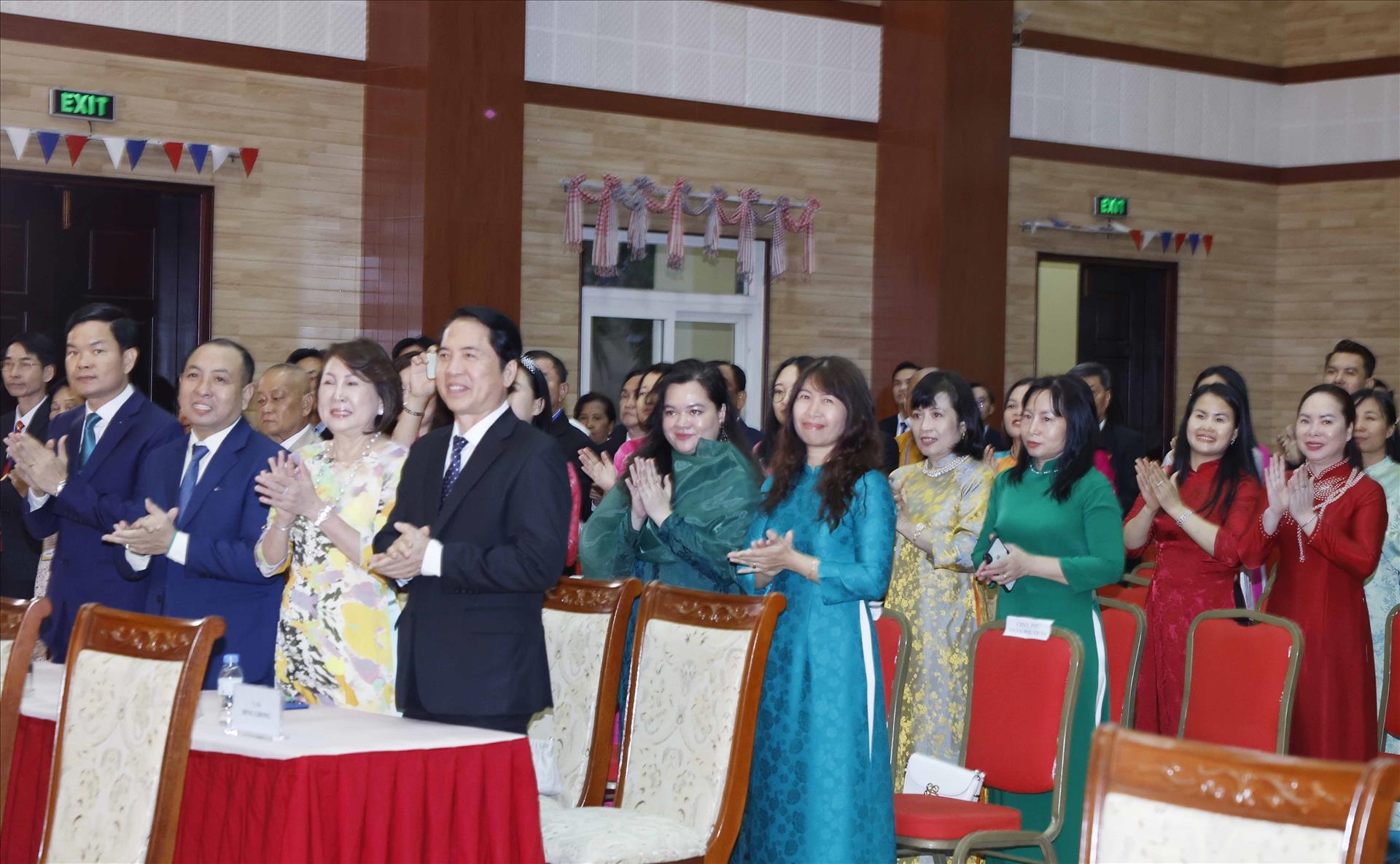 Cán bộ, nhân viên Đại sứ quán và cộng đồng người Việt Nam tại Campuchia trong buổi gặp mặt. Ảnh: Thống Nhất – TTXVN