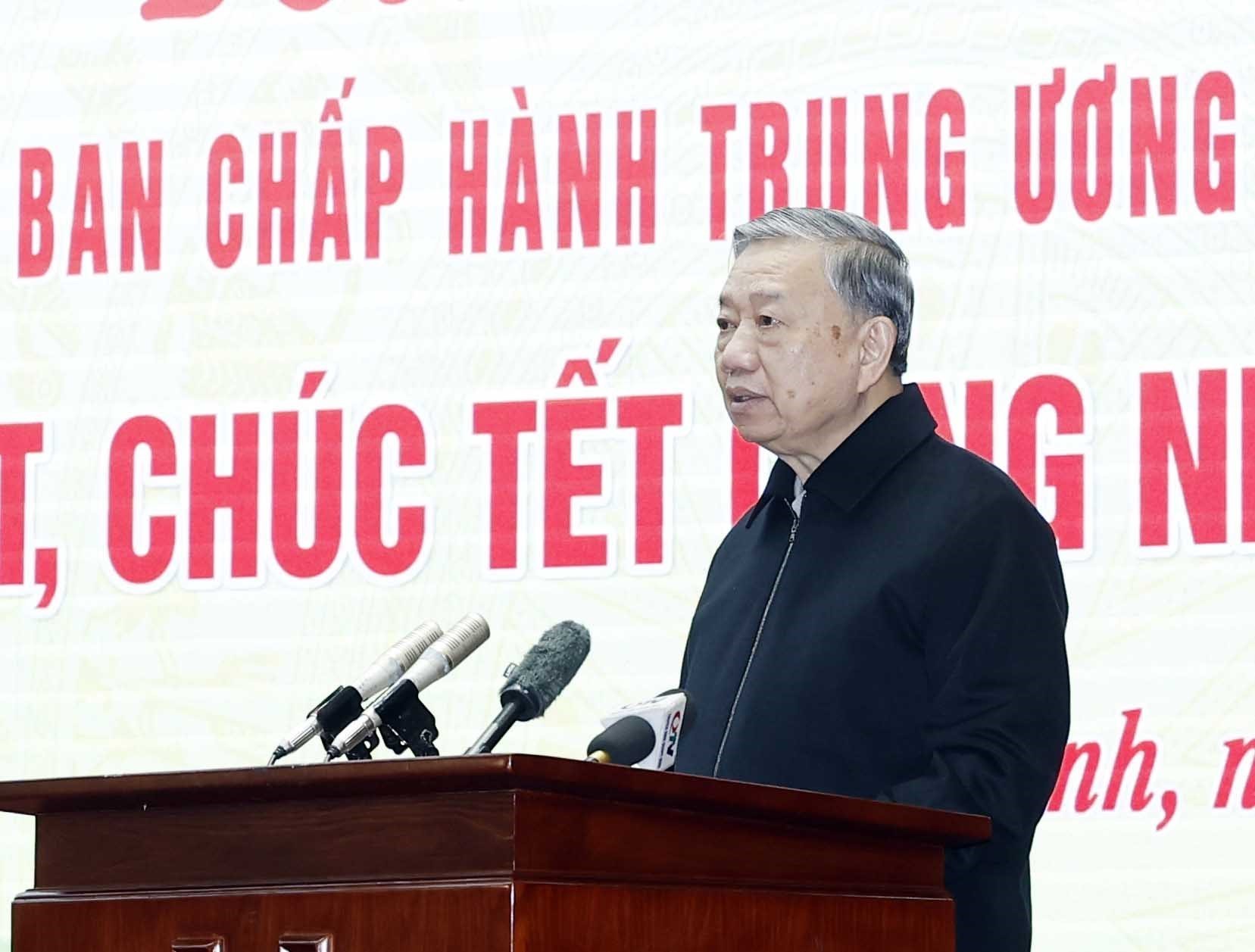 Nhân dịp chuẩn bị đón Tết cổ truyền của dân tộc, Tổng Bí thư Tô Lâm chúc anh chị em công nhân và gia đình một năm mới mạnh khỏe, an toàn, hạnh phúc; chúc mỗi ca sản xuất đều bảo đảm an toàn, mỗi gia đình đều có một cái Tết sum vầy, trọn vẹn.