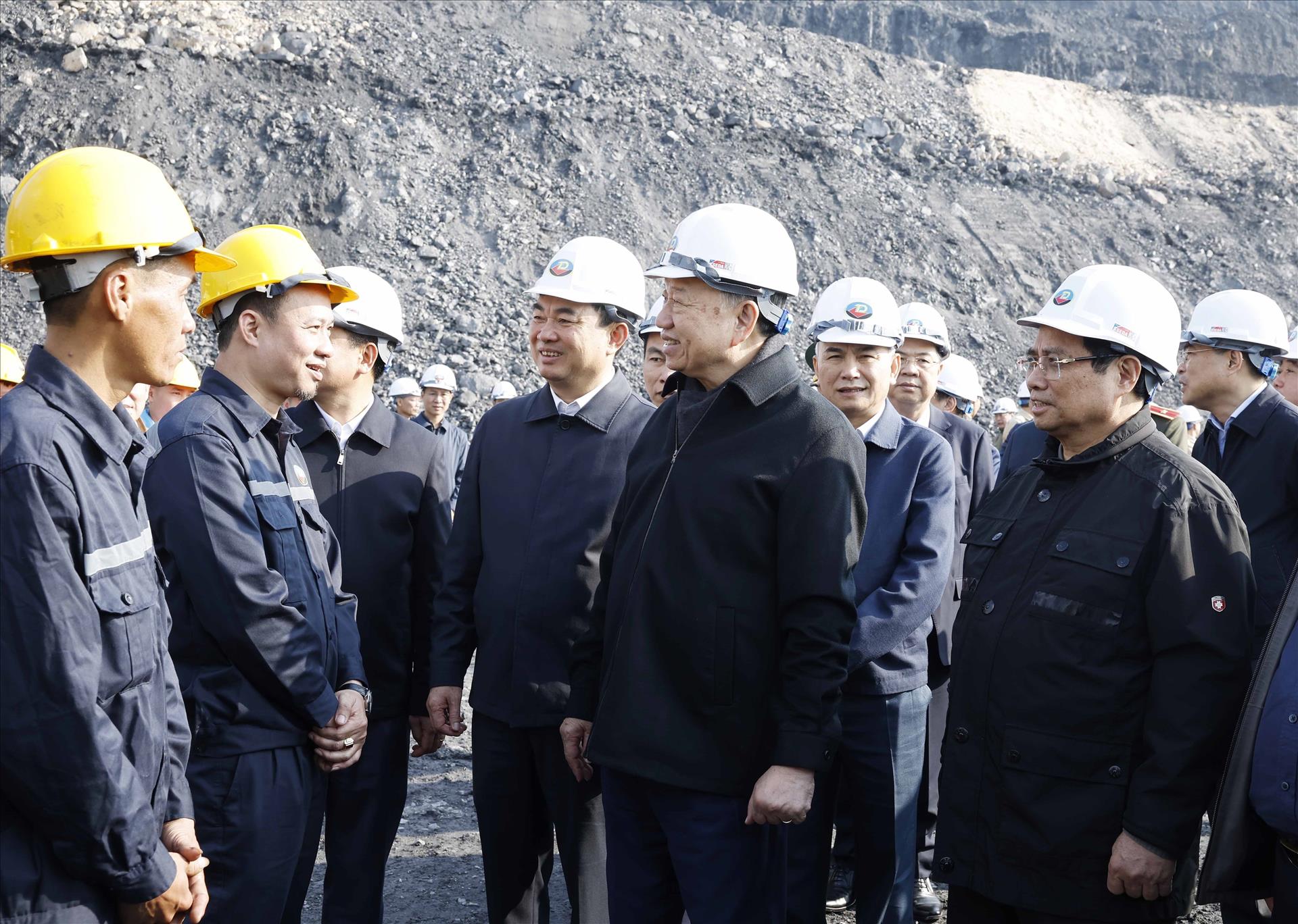 Thăm, động viên cán bộ, công nhân Công ty Cổ phần Than Đèo Nai – Cọc sáu (Tập đoàn Công nghiệp Than và Khoáng sản Việt Nam), tại tỉnh Quảng Ninh, Tổng Bí thư Tô Lâm đã trò chuyện và tặng quà các công nhân trực tiếp sản xuất trên khai trường.