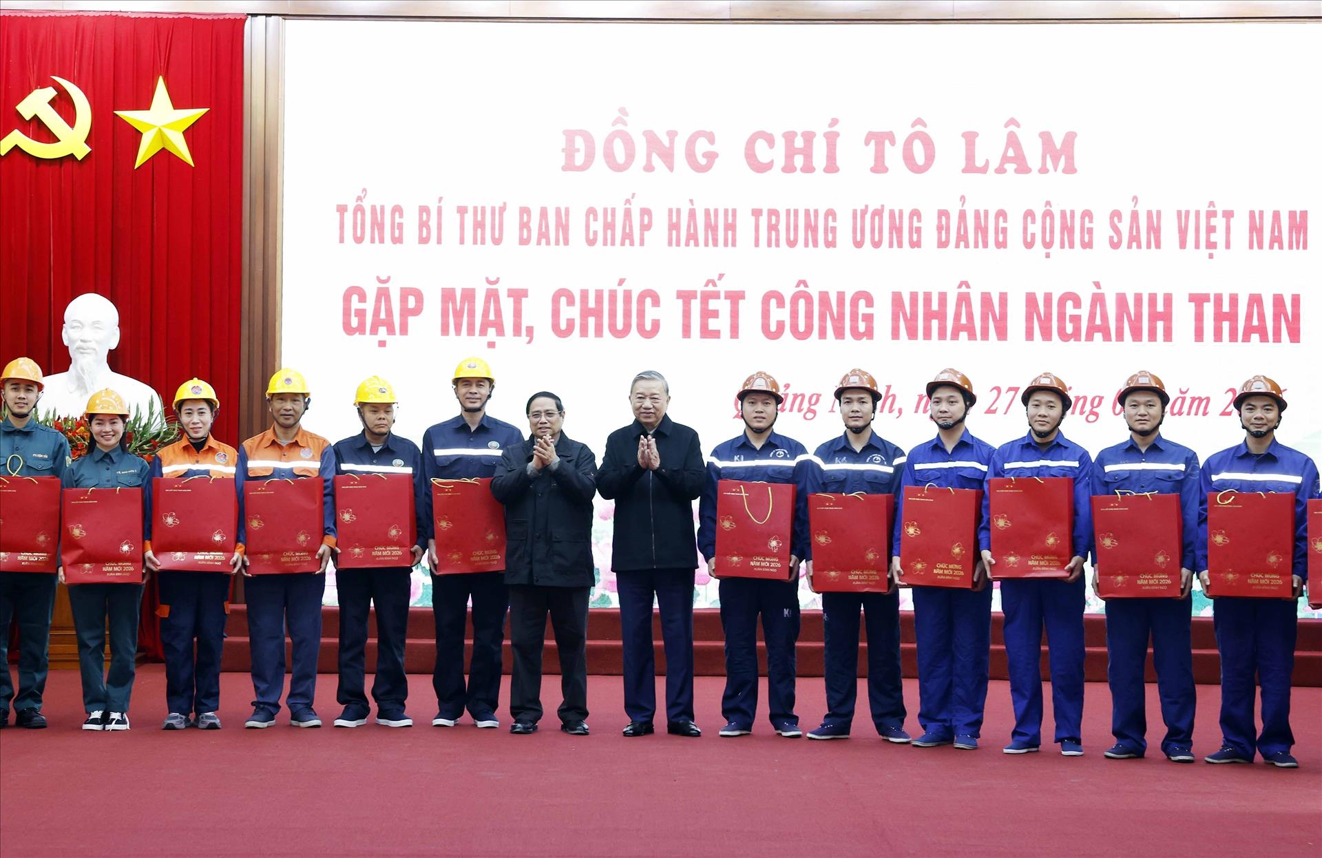 Nhân dịp này, Tổng Bí thư Tô Lâm và Thủ tướng Chính phủ Phạm Minh Chính đã tặng quà cho đại diện các tập thể và công nhân, người lao động ngành Than./.