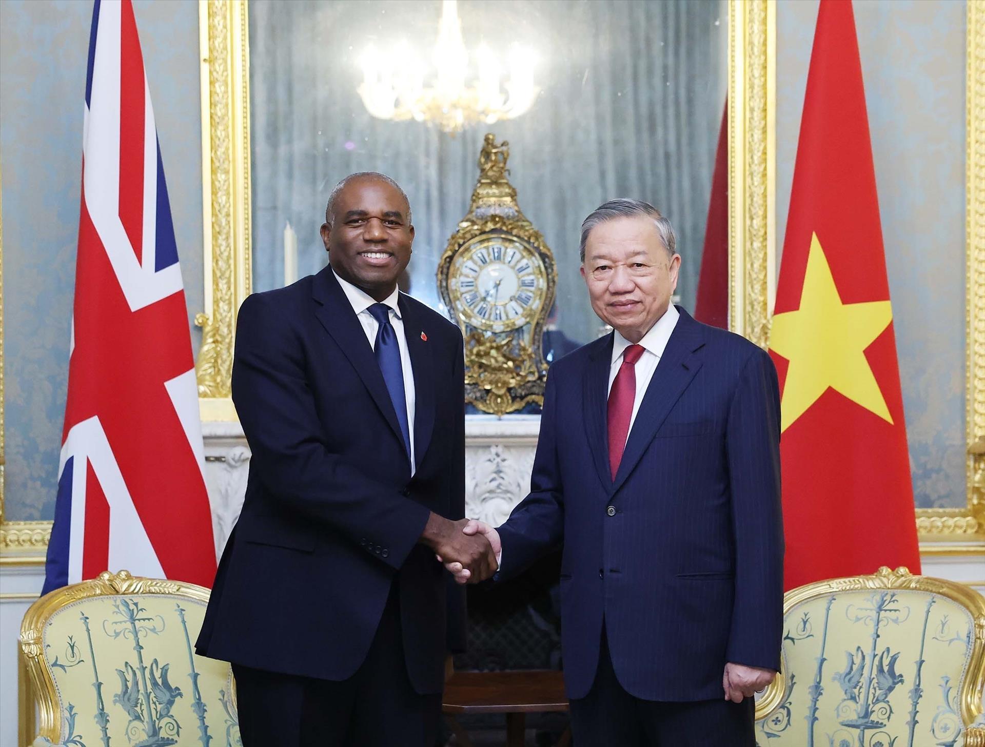 Tổng Bí thư Tô Lâm gặp Phó Thủ tướng Anh David Lammy. Ảnh: Thống Nhất – TTXVN