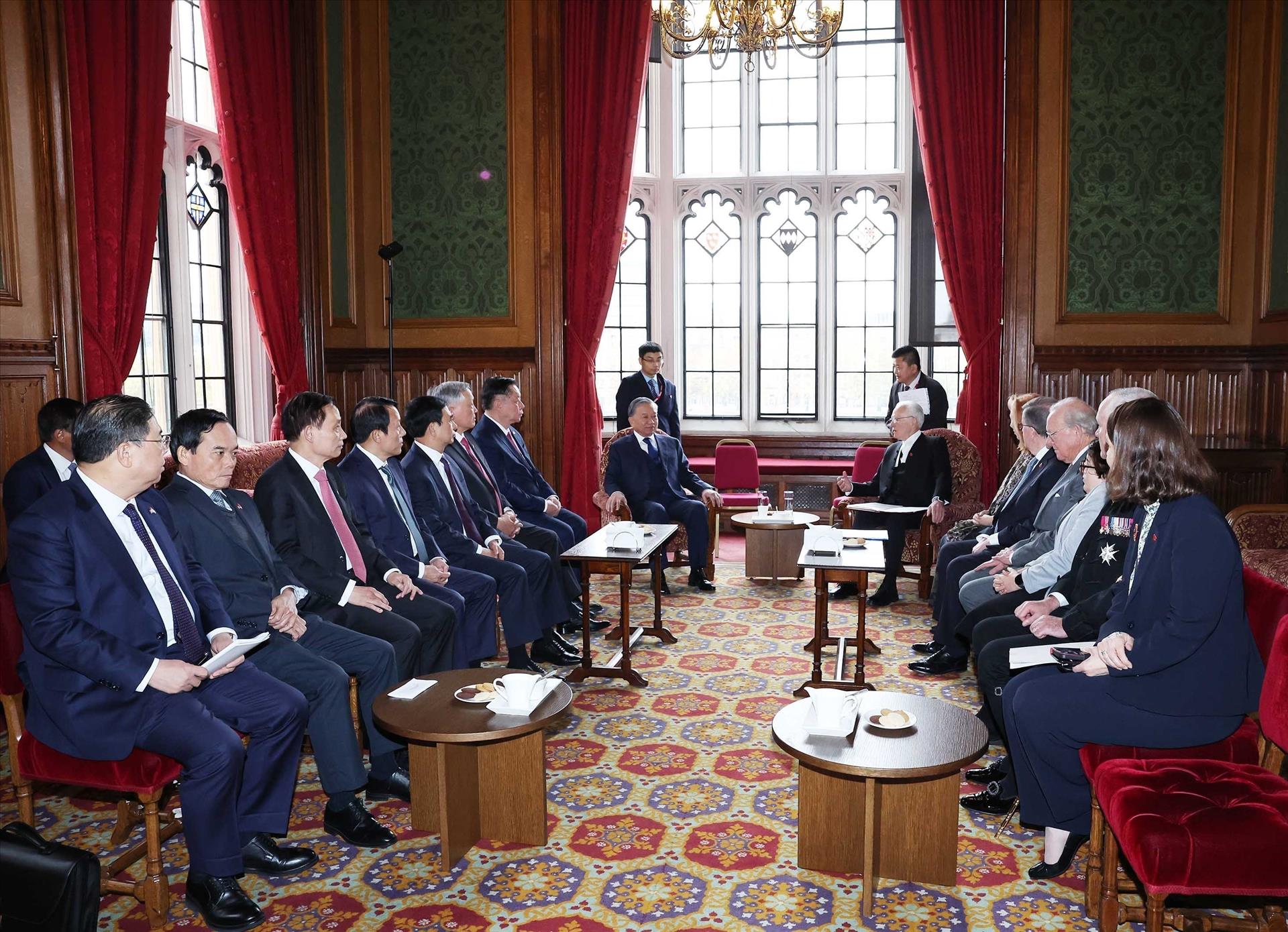Chủ tịch Thượng viện Anh John McFall hoan nghênh và bày tỏ coi trọng chuyến thăm chính thức của Tổng Bí thư Tô Lâm và Đoàn đại biểu cấp cao Việt Nam sang thăm chính thức Anh. Chúc mừng những thành tựu phát triển kinh tế-xã hội, đối ngoại của Việt Nam dưới sự lãnh đạo của Đảng Cộng sản Việt Nam và cá nhân Tổng Bí thư Tô Lâm, ngài McFall khẳng định Anh luôn coi trọng phát triển quan hệ với Việt Nam, sẵn sàng hợp tác chặt chẽ nhằm làm sâu sắc hơn nữa hợp tác giữa hai nước trên các lĩnh vực, nhất là giáo dục-đào tạo, quốc phòng... Chủ tịch Thượng viện Anh cũng gửi lời hỏi thăm, chia sẻ về tình hình lũ lụt tại Việt Nam hiện tại.
