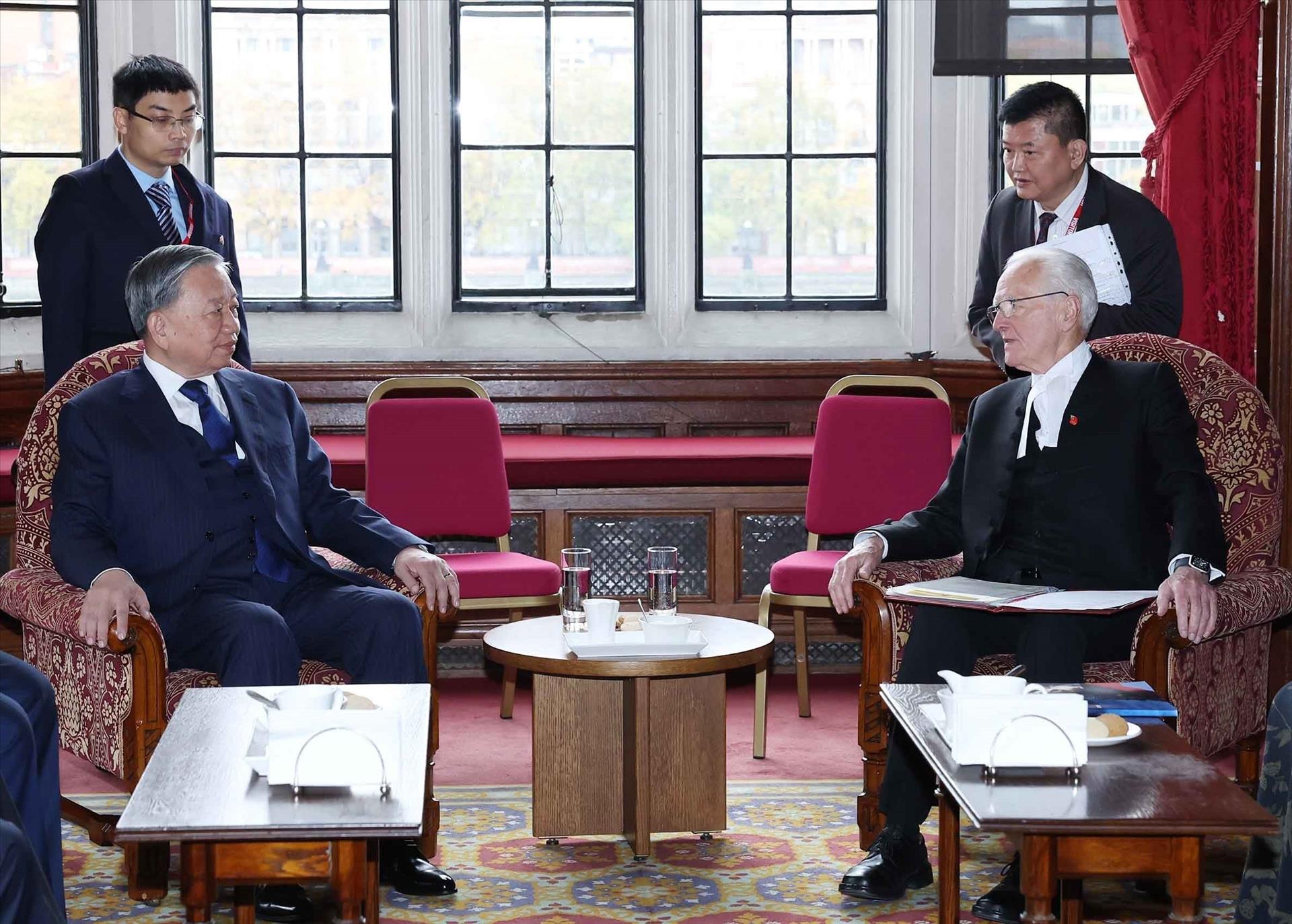 Tổng Bí thư Tô Lâm hội kiến Chủ tịch Thượng viện Anh John McFall, Nam tước McFall xứ Alcluith. Ảnh: Thống Nhất – TTXVN