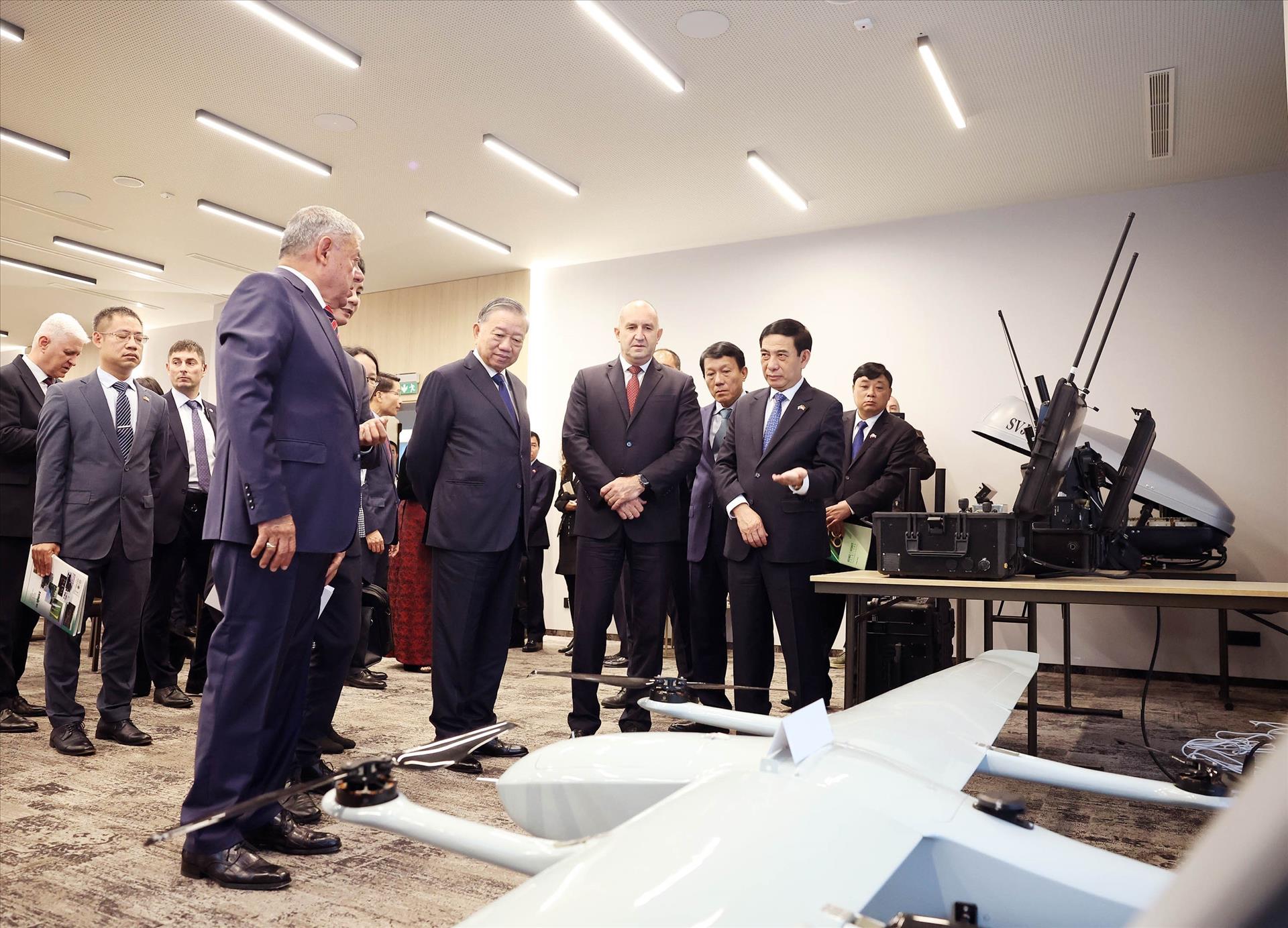Tại đây, Tổng thống Cộng hòa Bulgaria Rumen Radev cũng đã trực tiếp giới thiệu với Tổng Bí thư Tô Lâm về nền công nghiệp quốc phòng của Bulgaria, nhấn mạnh những năng lực và sản phẩm chủ chốt của Công ty công nghiệp quốc phòng Samel-90.