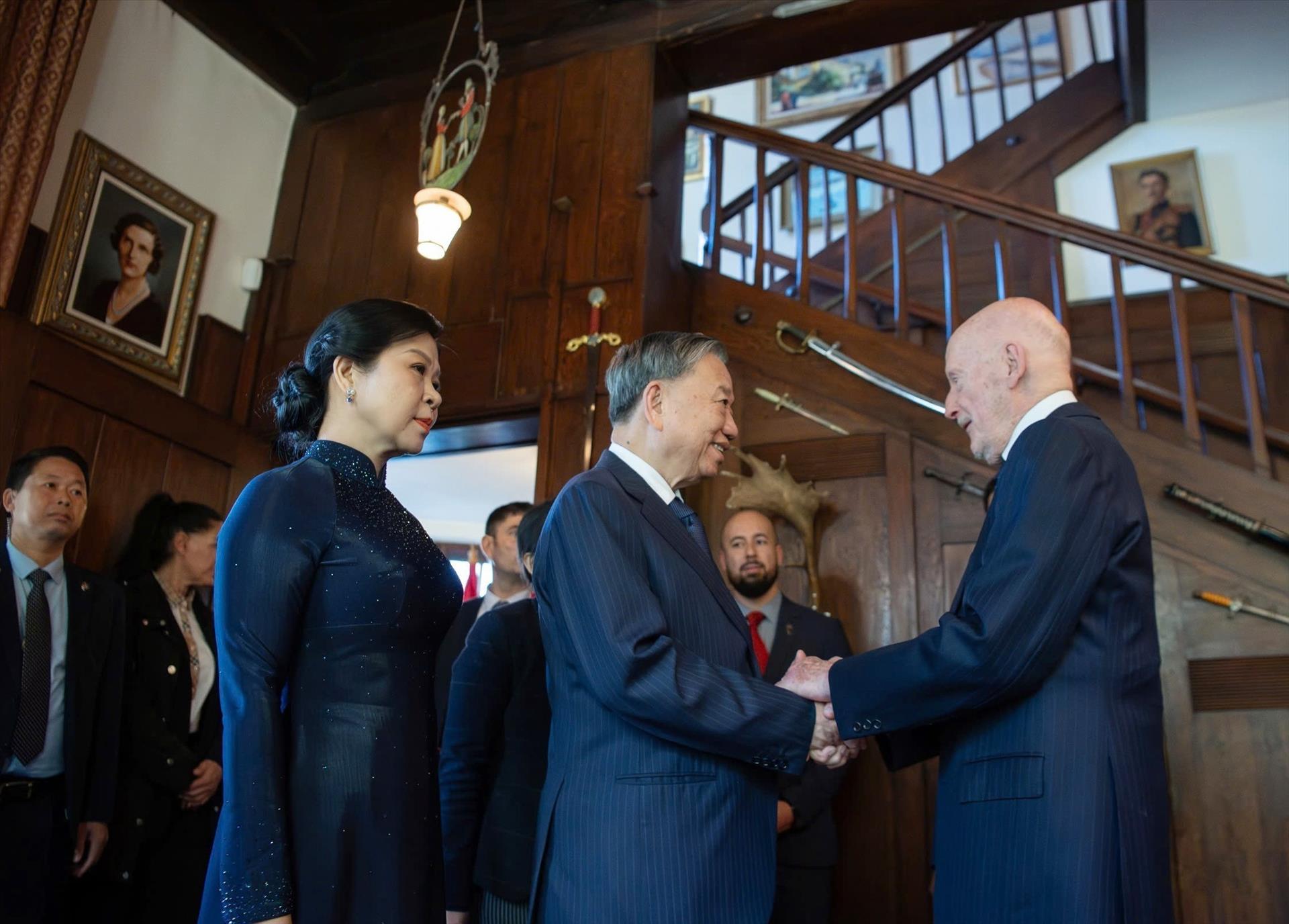 Tổng Bí thư Tô Lâm và Phu nhân gặp Cựu hoàng Simeon Saxe-Coburg-Gotha. Ảnh: TTXVN phát