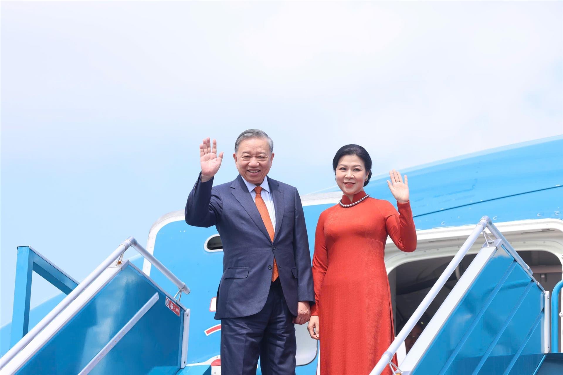 Lễ tiễn Tổng Bí thư Ban Chấp hành Trung ương Đảng Cộng sản Việt Nam Tô Lâm và Phu nhân tại sân bay quốc tế Nội Bài. Ảnh: Thống Nhất - TTXVN