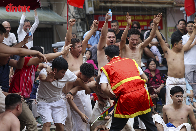Các vận động viên làm lễ trước khi bước vào thi đấu, thể hiện tinh thần thượng võ và tôn kính Thành hoàng làng.