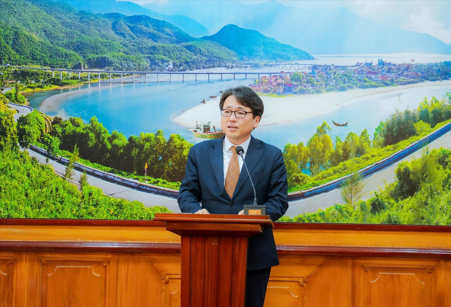 Ông Kang Bong Jun phát biểu tại buổi nhận Danh hiệu “Công dân Danh dự thành phố Huế". Ảnh: Nguyên Lý - TTXVN